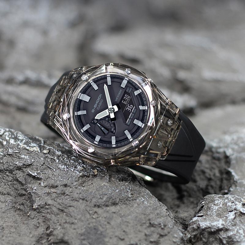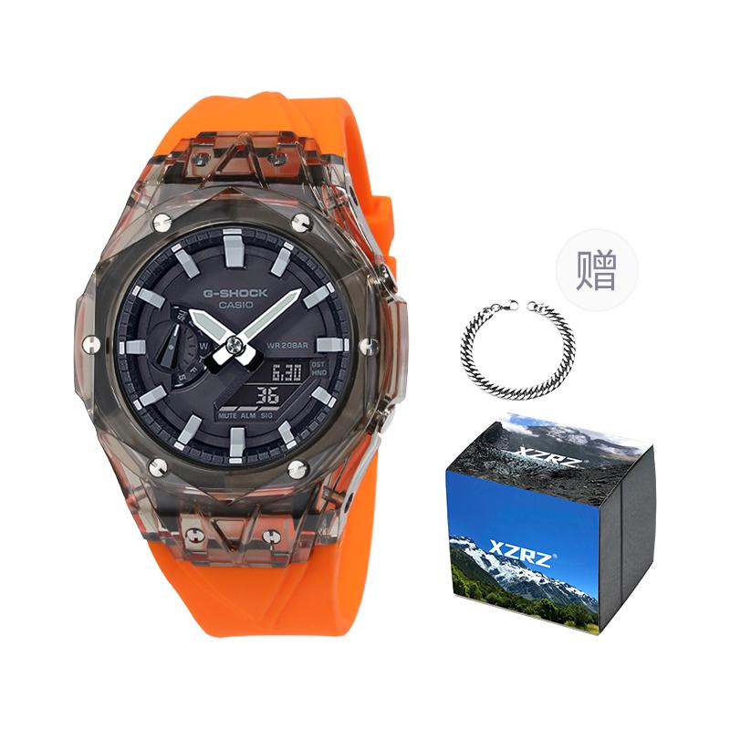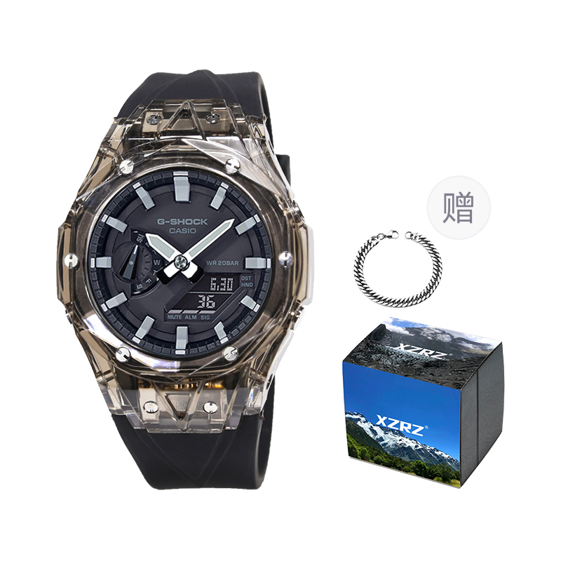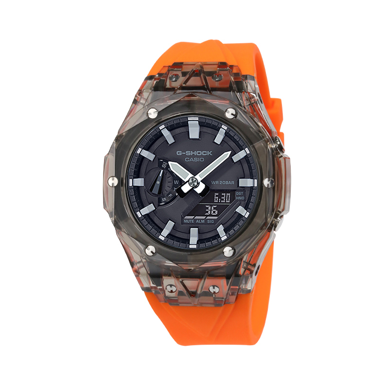 Цвет ремешка: черный прозрачный корпус часов, неоново-зеленый резиновый ремешок