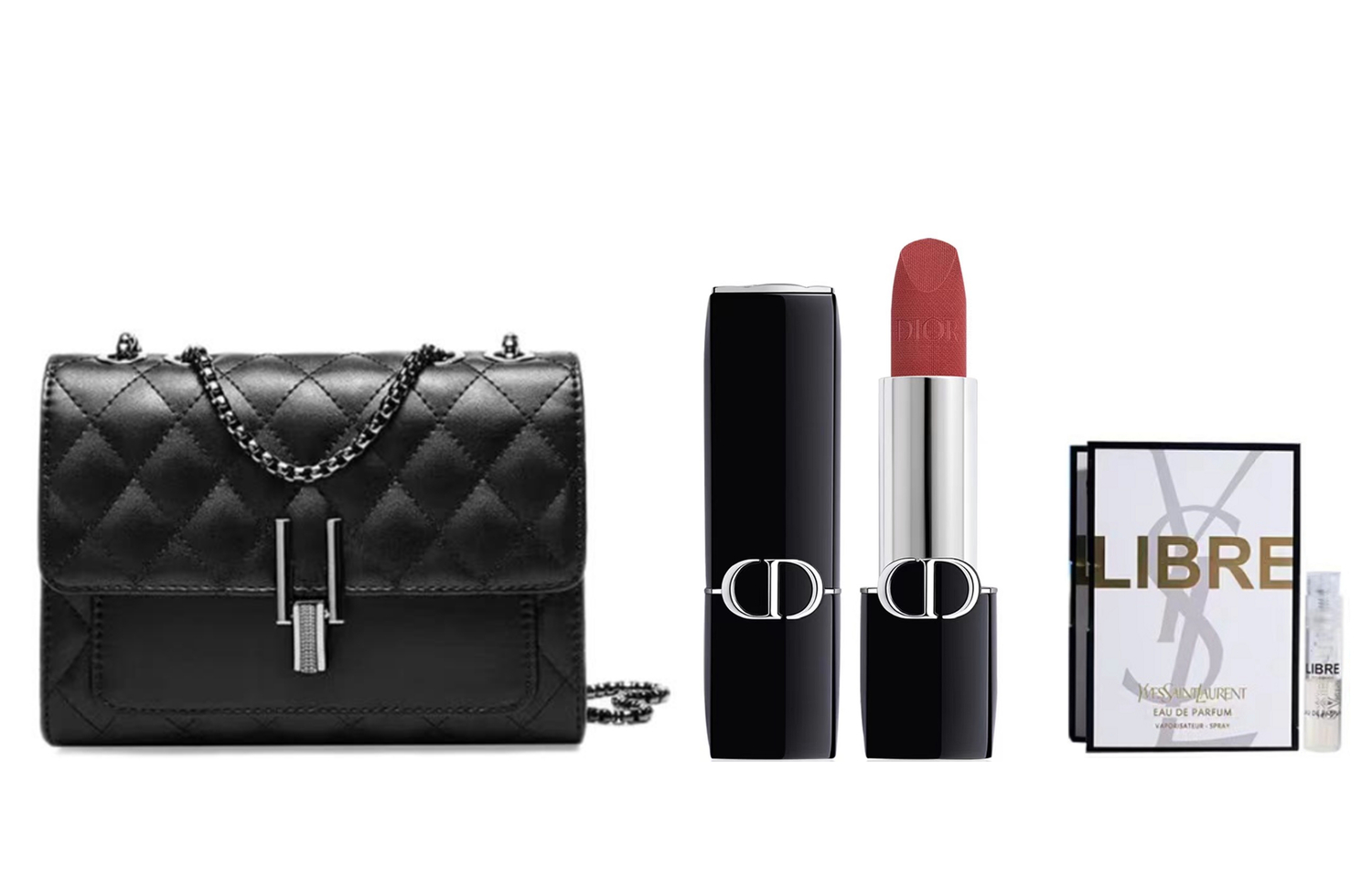 Характеристики: Увлажняющий шелковый сияющий костюм Dior 720 3,5 г + набор концентрированных ароматов Chanel Eau de Toilette 1,2 мл + мини-сумка Chanel Black Grid