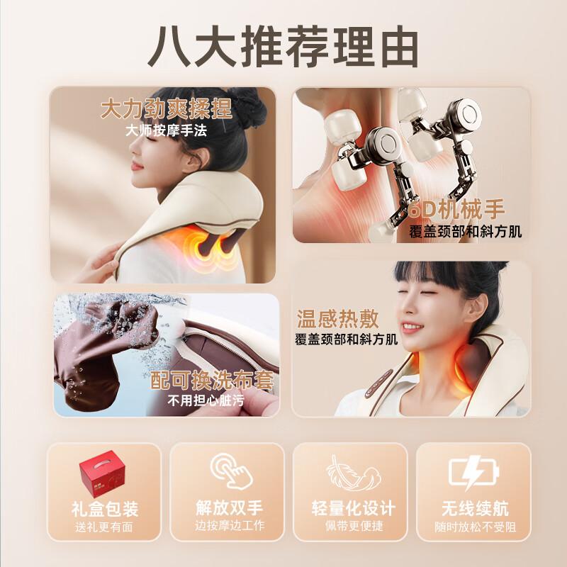 Цвет: 【Изысканная подарочная коробка - бежево-коричневый】6D захват и разминание трапециевидных мышц + горячий компресс + беспроводной стереоскопический