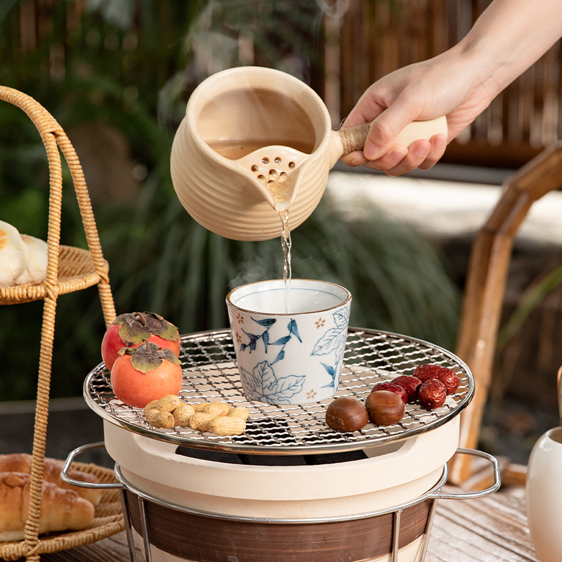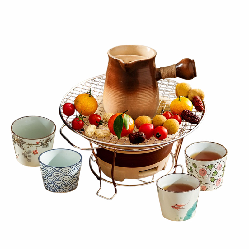 Цвет: Круглый коричневый горшок 500 мл + полный комплект для приготовления пищи на углях + чашка