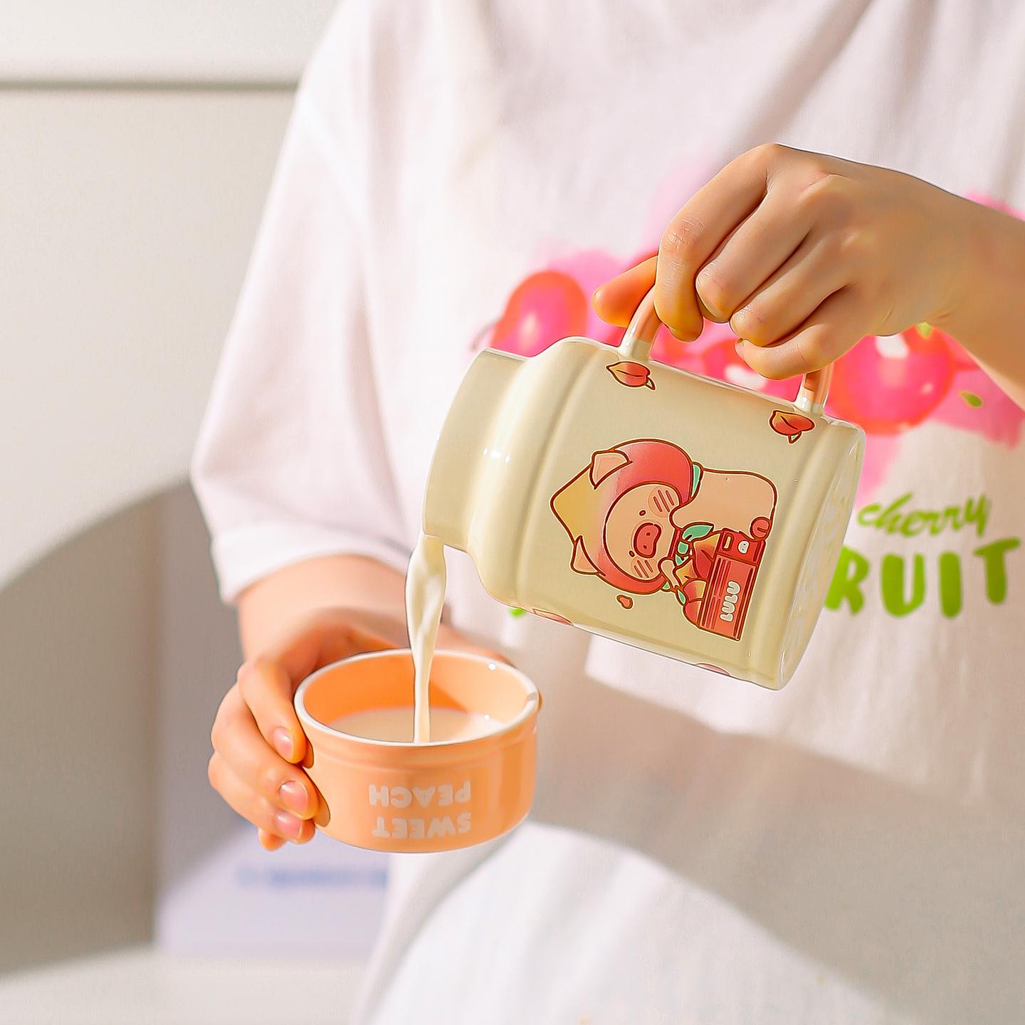 Цвет: [Многоцветный набор] Кружка с крышкой «Свинка Лулу» (Фермерская свинка)