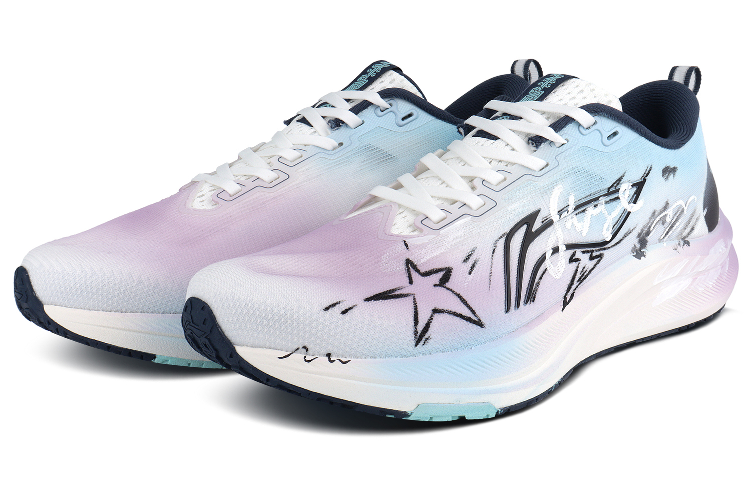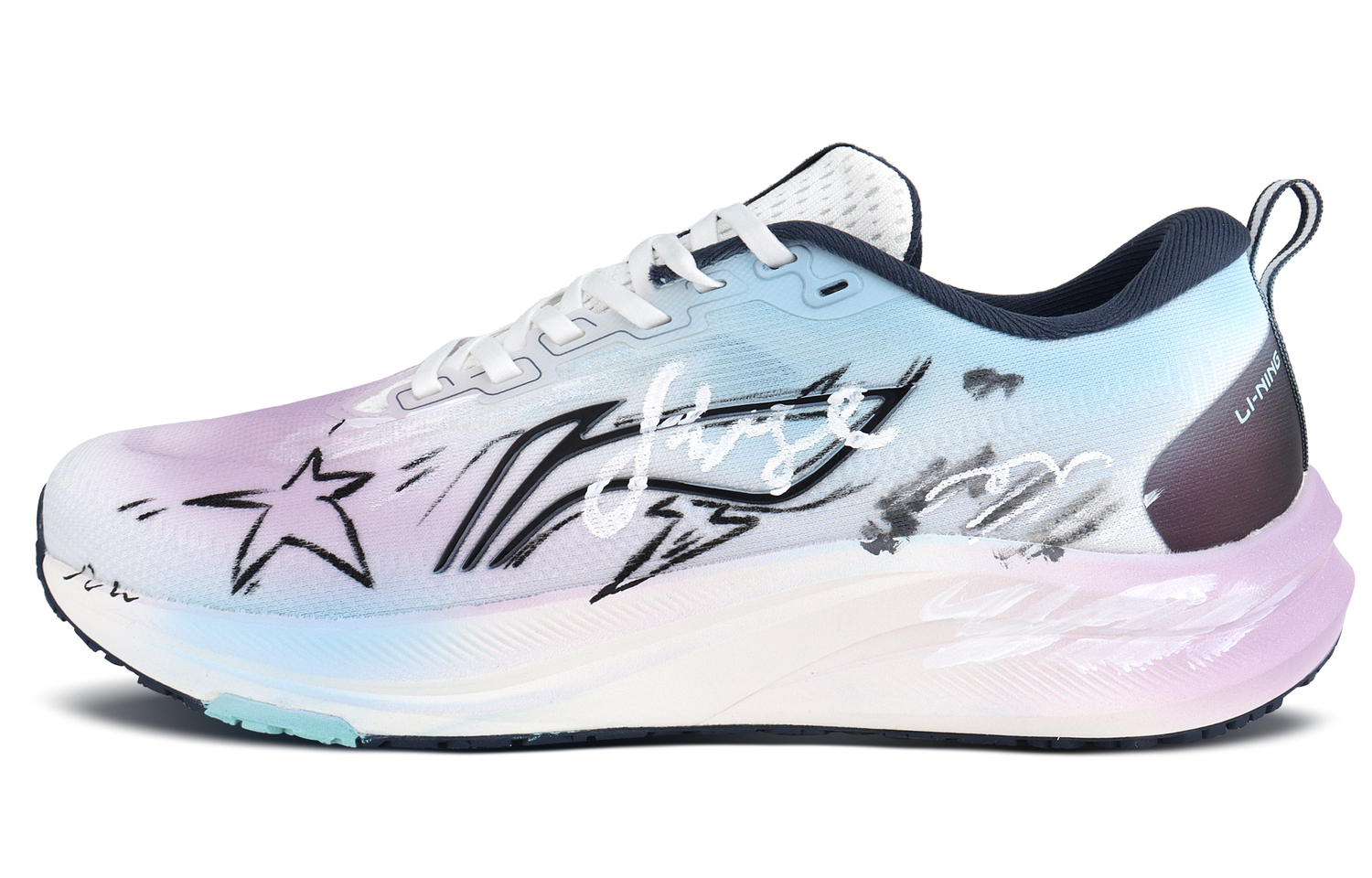 Эти кастомизированные кроссовки основаны на модели Li-Ning Chitu 8. Дизайн вдохновлен изящным движением звезд. Кроссовки выполнены в сине-белой цветовой гамме и расписаны вручную профессиональными красителями. Цветовая гамма сдержанная, но роскошная, а узоры элегантны и динамичны.