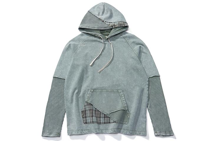 Основываясь на фирменном стиле xVESSEL с эффектом потертости и состаривания, был добавлен новый многослойный дизайн, идеально демонстрирующий многослойность благодаря четким, но мягким линиям. Сочетание деконструктивизма и потертостей и состаривания придает общему образу ощущение высокого качества, а лоскутная ткань на толстовке создает многослойный эффект. Детали, сочетающие минимализм и ретростиль, придают светло-голубому потертому и состаренному образу современную эстетику, тонко раскрывая модные идеи в элегантном и простом дизайне.