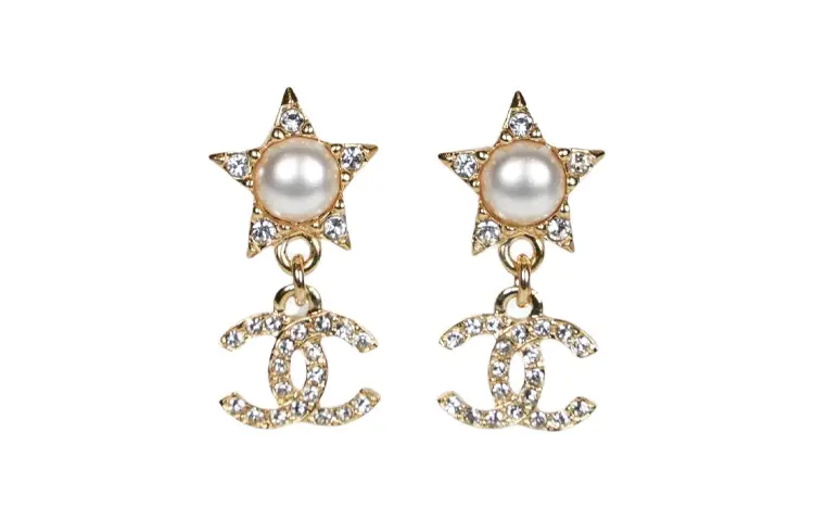 Женские золотые серьги Pearl, Rhinestone CHANEL