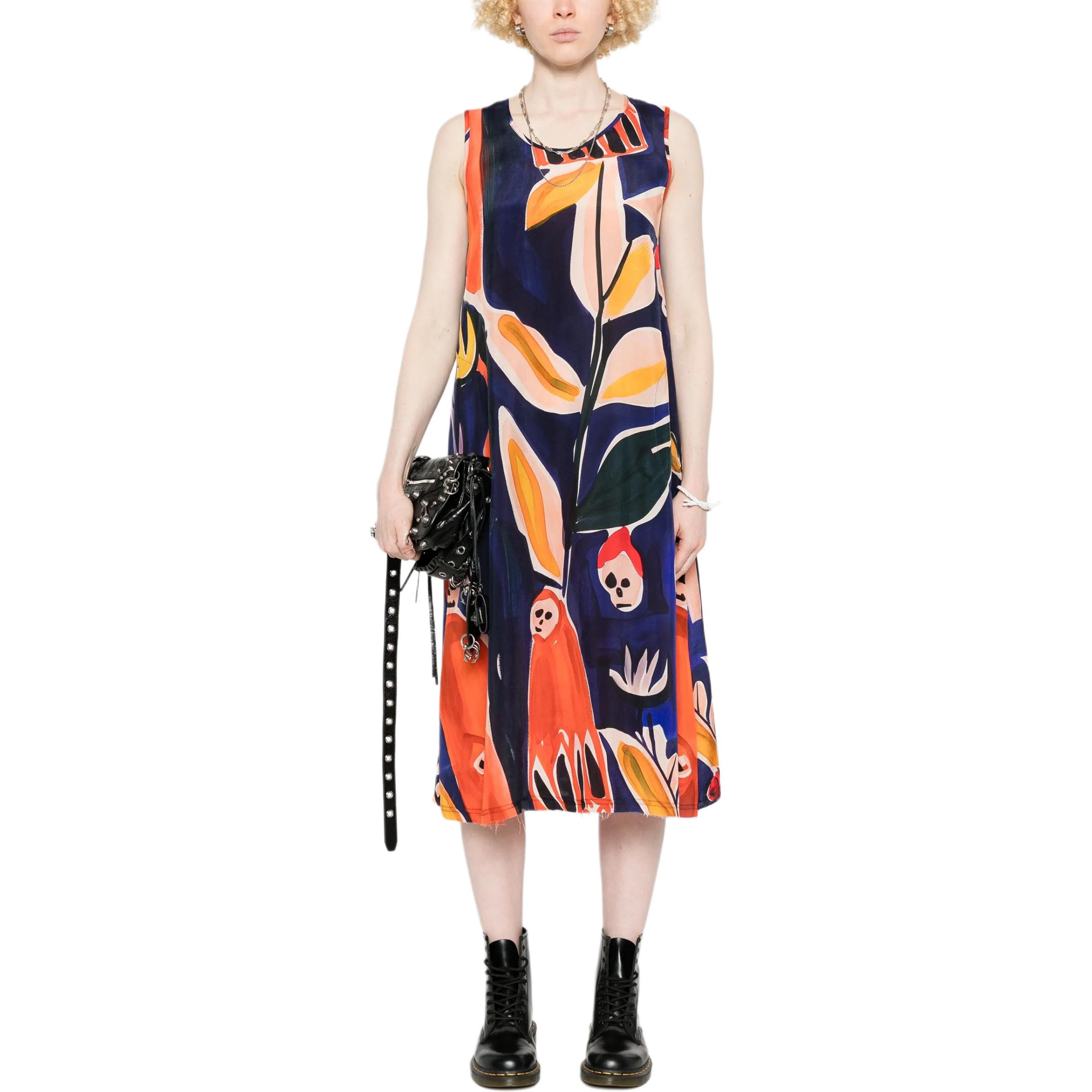 Принтованное платье миди без рукавов R13, синий 52 178₽