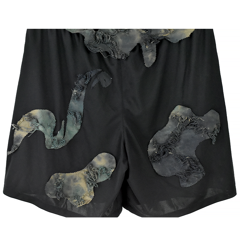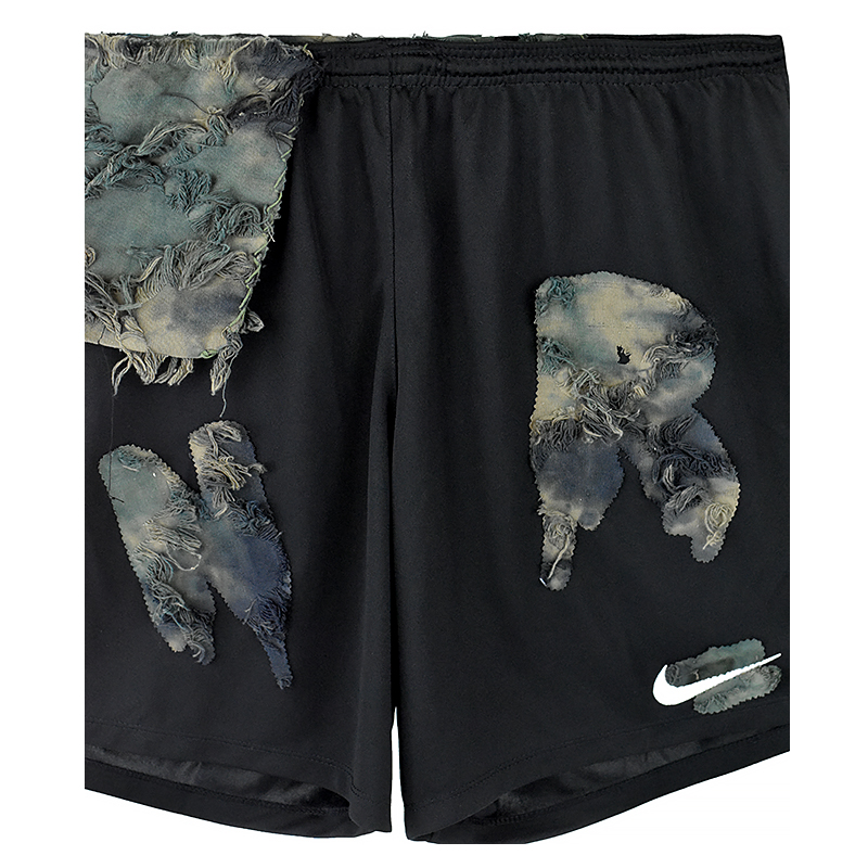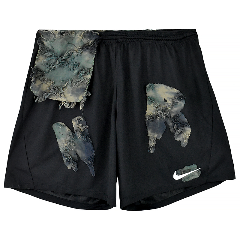 Эти спортивные шорты, разработанные на заказ, созданы на основе оригинальных быстросохнущих и дышащих мужских черных спортивных шорт Nike Dri-FIT. Оригинальный дизайн, доступный эксклюзивно на Dewu, станет отличным выбором для законодателей моды. Основная часть шорт выполнена в стиле пэчворк: неровные вставки из ткани тай-дай, соединенные вместе, создают естественный цветовой градиент, сочетание синего и зеленого, напоминающее фрагменты абстрактной картины. Потертые края и рваные детали добавляют нотку бунтарства и дерзости, демонстрируя уникальный подход в каждой детали. Прогуливаясь по улице, вы гарантированно привлечете всеобщее внимание.