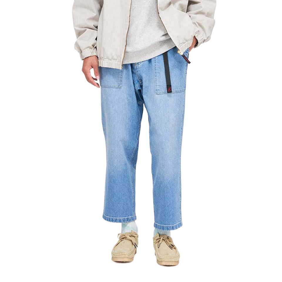 Эти очень прочные повседневные брюки для активного отдыха изготовлены из эластичного денима плотностью 12 унций. Они имеют свободный пояс и зауженные брючины - без укороченного подола, просто удлиненные. Кроме того, они оснащены двумя большими передними карманами-карго, а также классической нейлоновой тесьмой Gramicci, регулируемой одной рукой, и ромбовидной простежкой на 180° в области шагового шва для свободы движений. · Эластичный пояс из эластичного денима · Встроенная нейлоновая тесьма, регулируемая одной рукой · Ромбовидная простежка на 180° в области шагового шва · Два передних кармана · Два накладных кармана сзади. Свободный крой, зауженные брючины