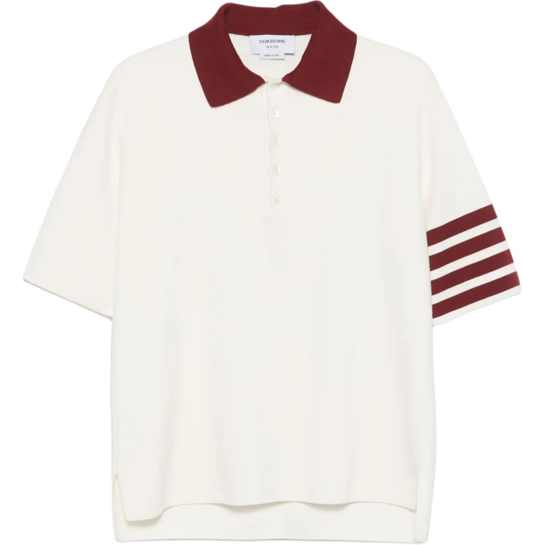 Поло в полоску с 4 полосками THOM BROWNE, белый