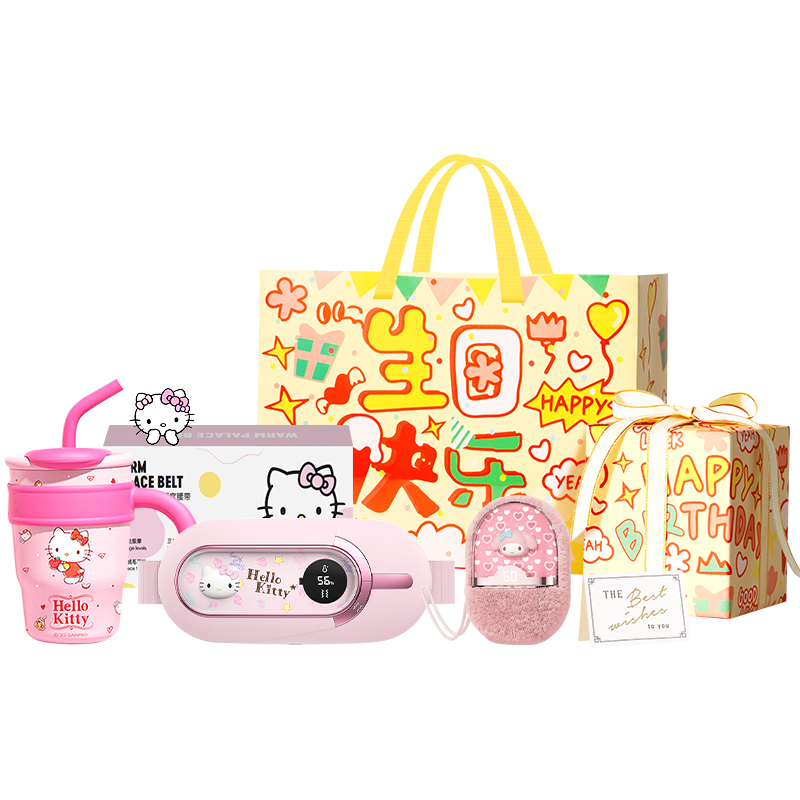 Комплекты одежды: [Комбинация с сумкой для покупок «С Днем Рождения»] Теплый пояс для матки + грелка для рук + двойной стакан