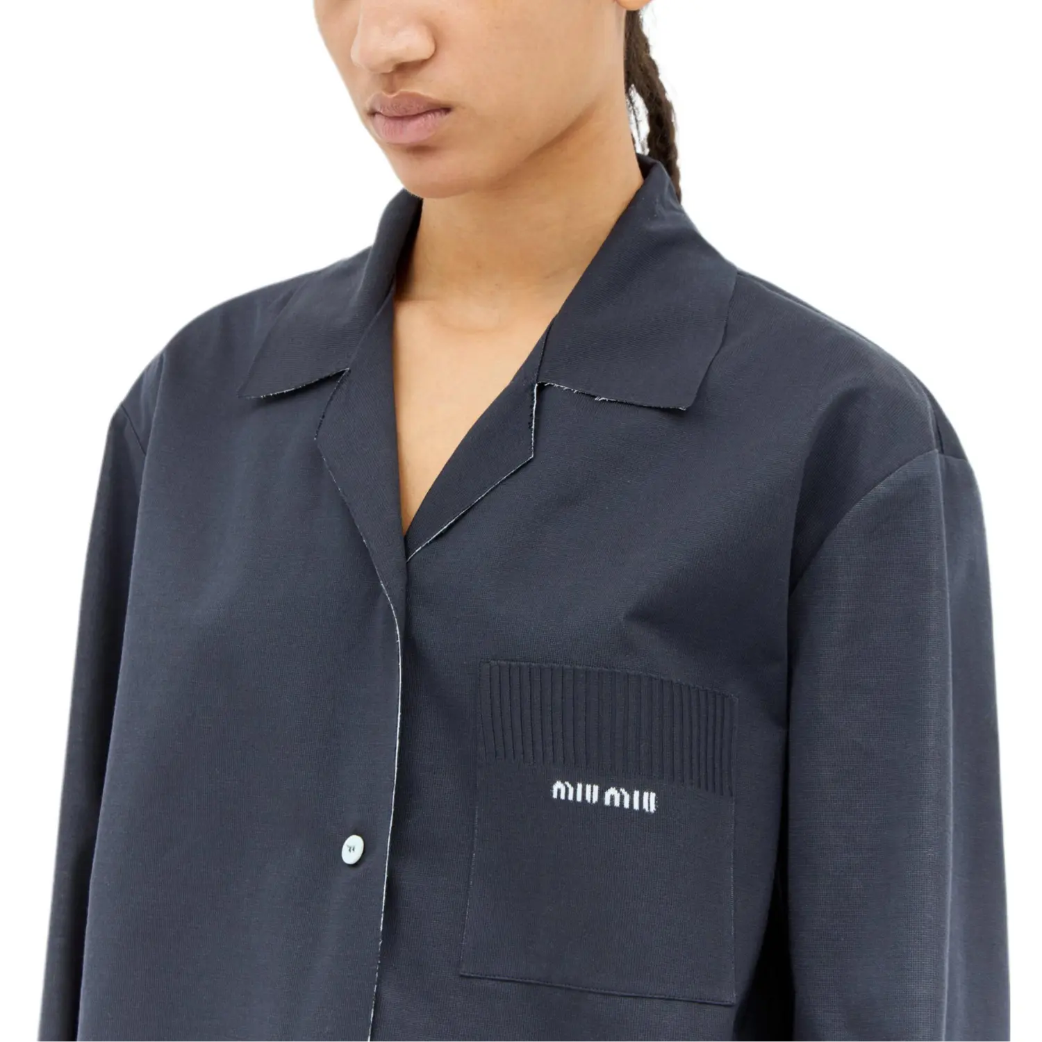 Трикотажная и поплиновая рубашка MIU MIU, синий 128 063₽
