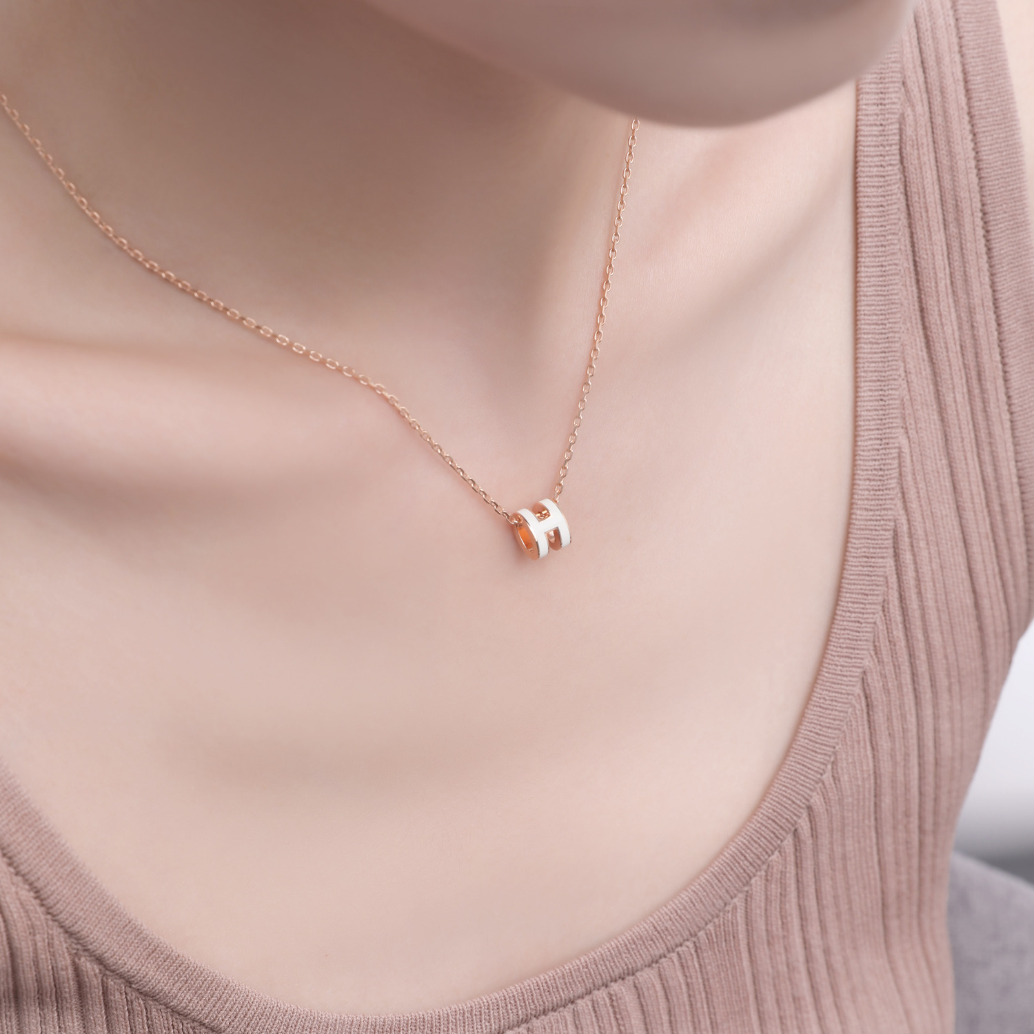 HERMES Миниатюрный кулон Pop H в розовом золоте