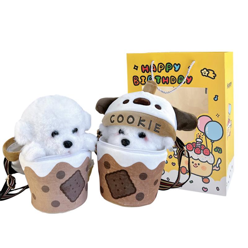 Название продукта: рюкзак в виде чашки для молочного чая + плюшевая игрушка-собачка [стиль подарочного пакета]