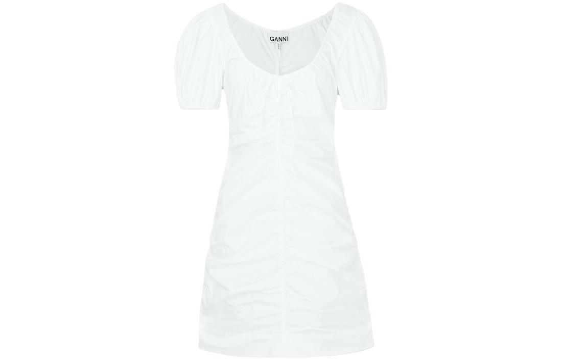 GANNI Женское белое платье с короткими рукавами