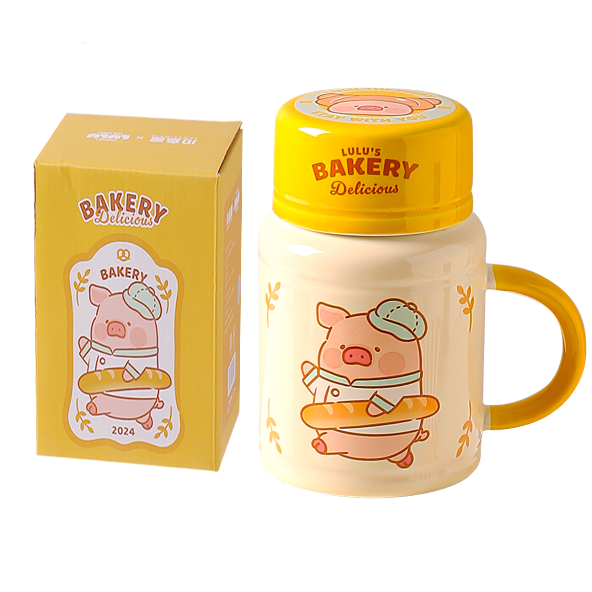 Цвет: [Сумка для покупок] Кружка Lulu The Piggy с крышкой (персиковая Piggy)