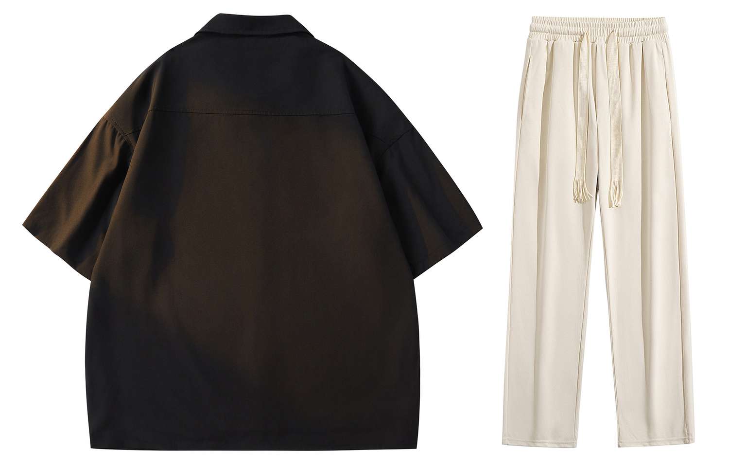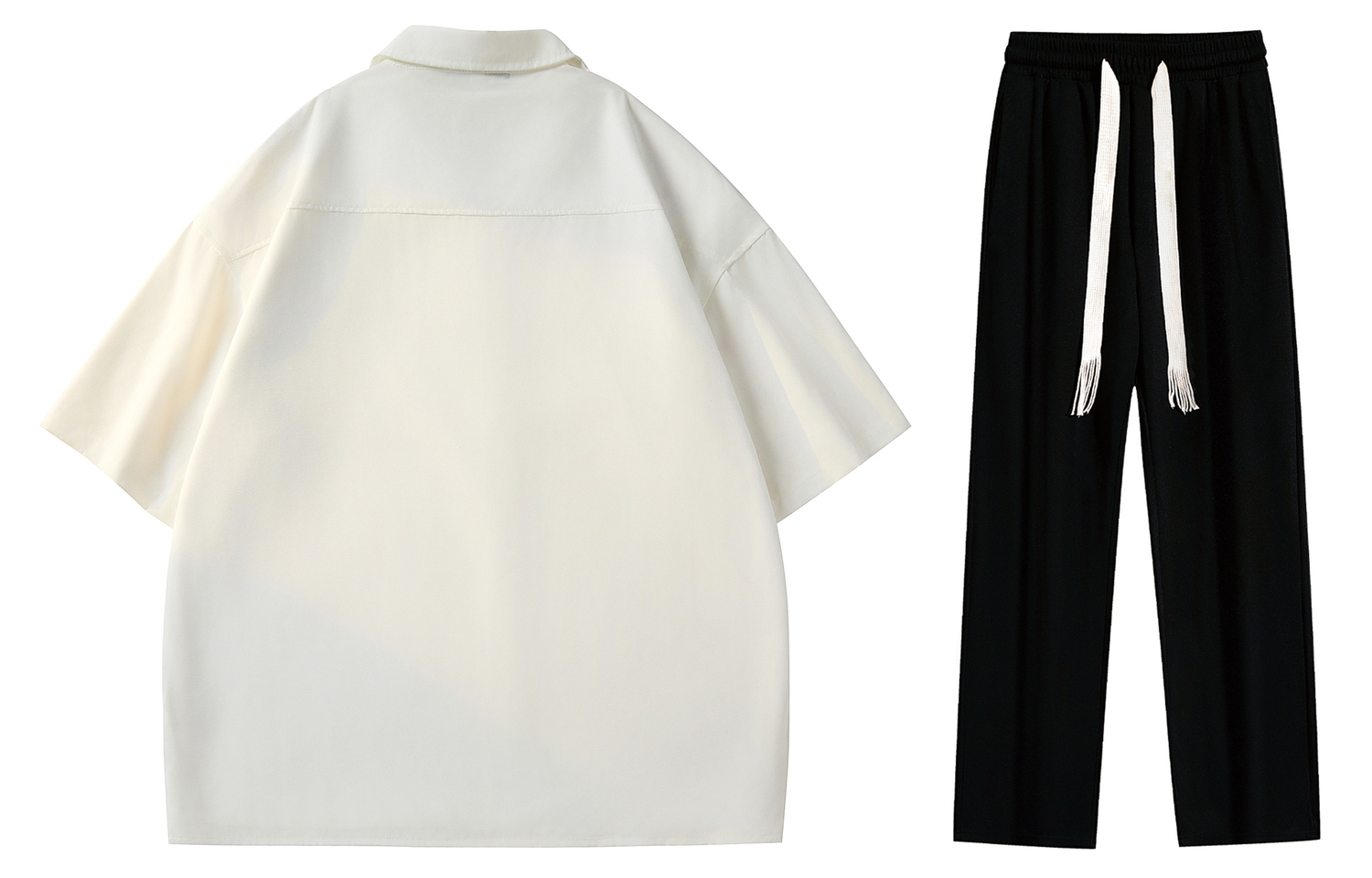 Комплект: Комплекты одежды (рубашка с короткими рукавами цвета экрю + белая футболка)