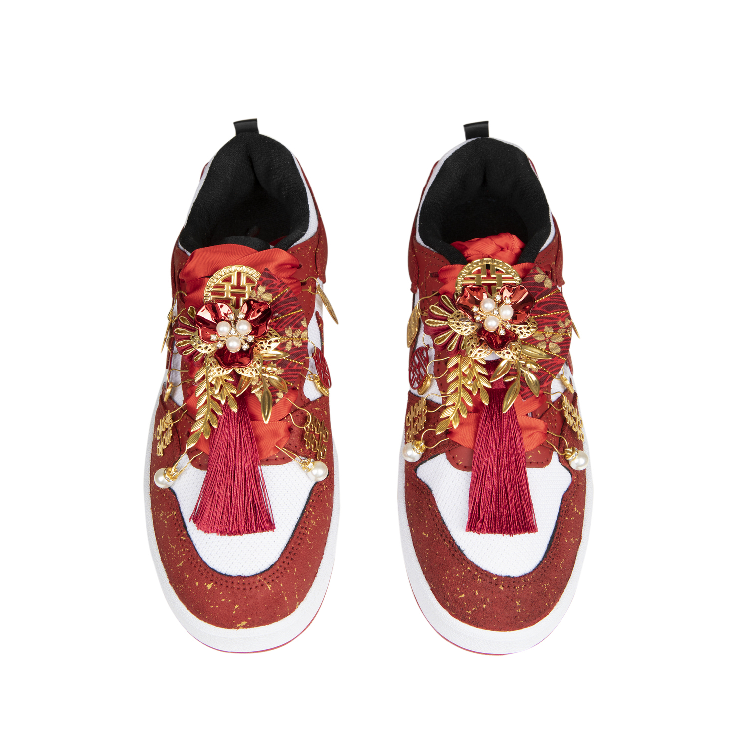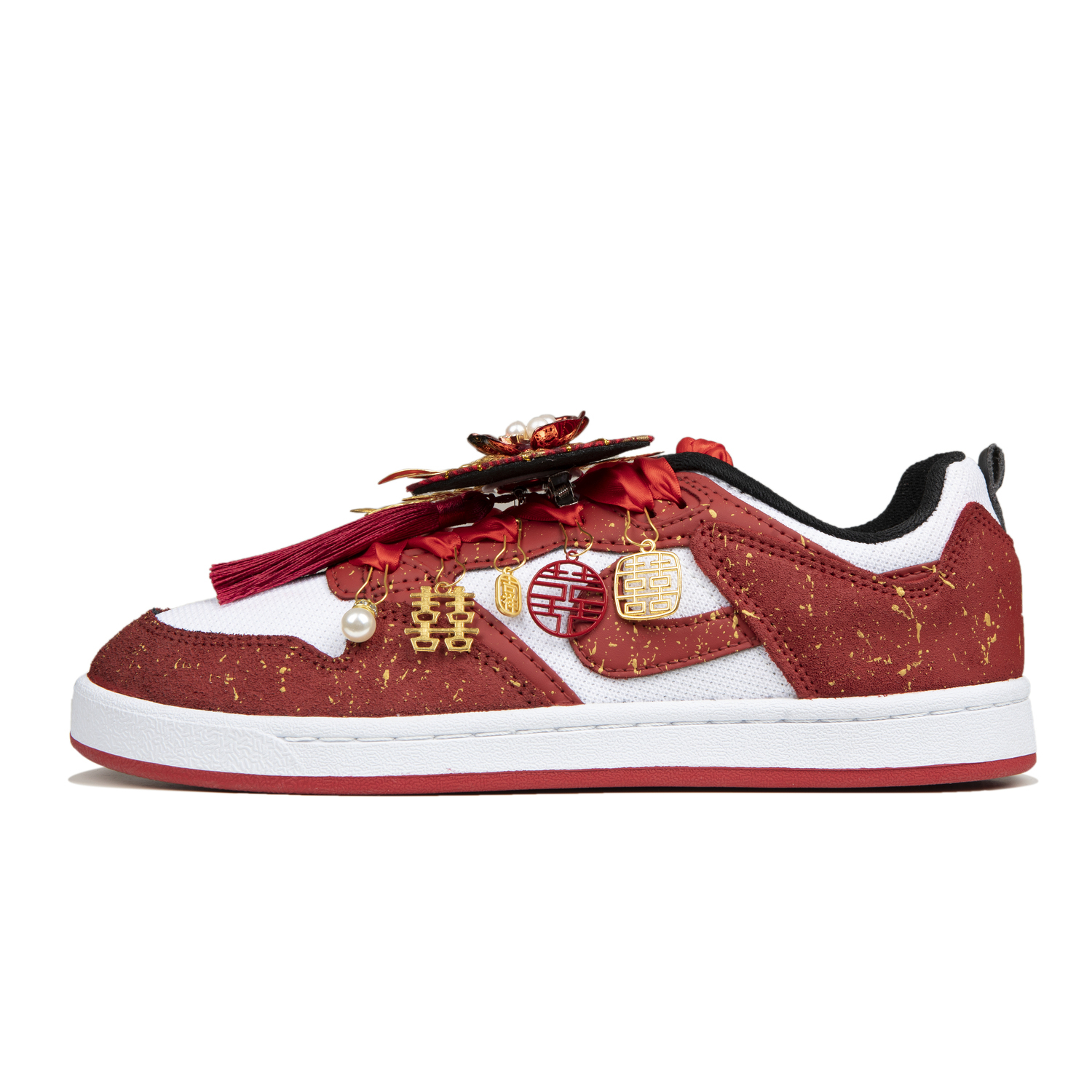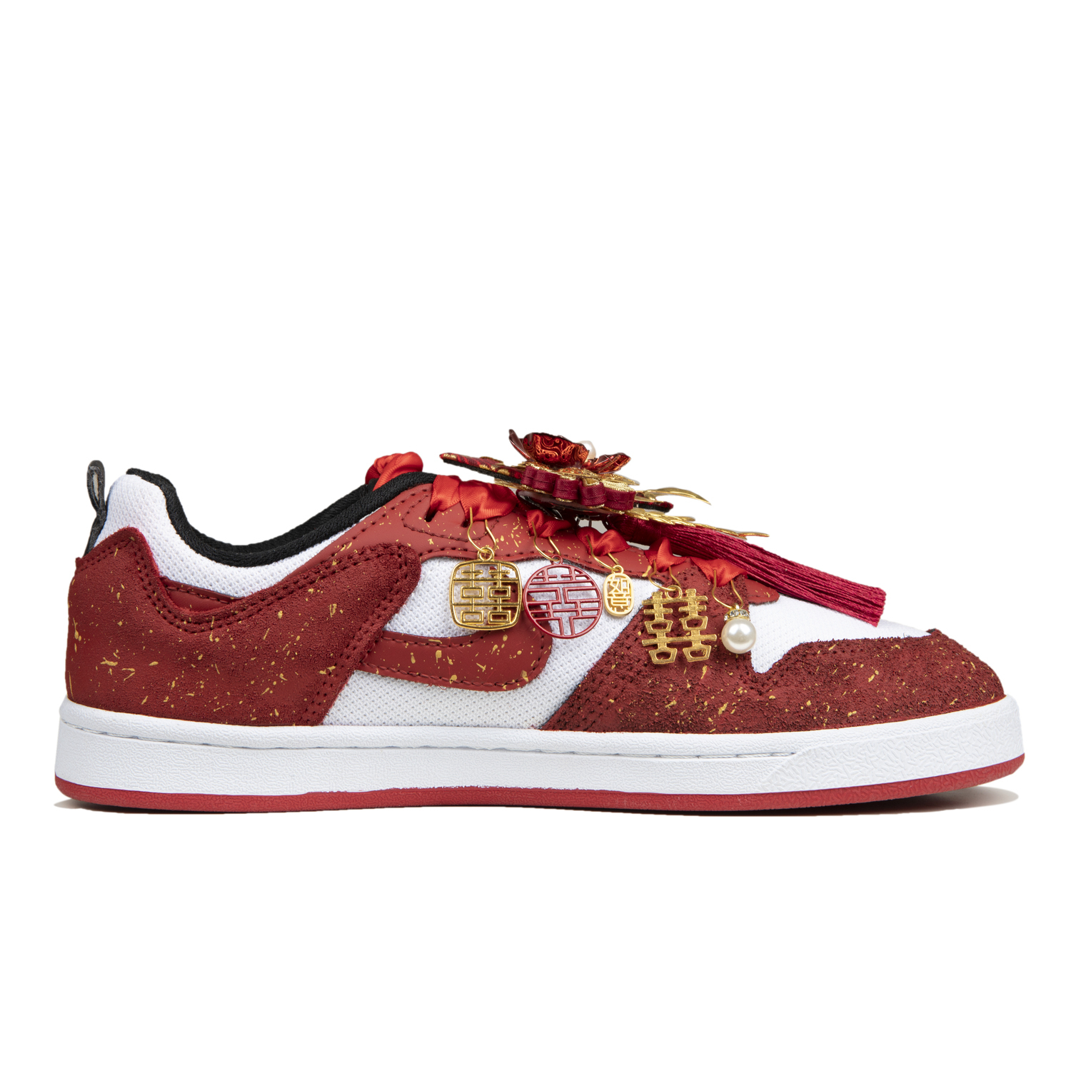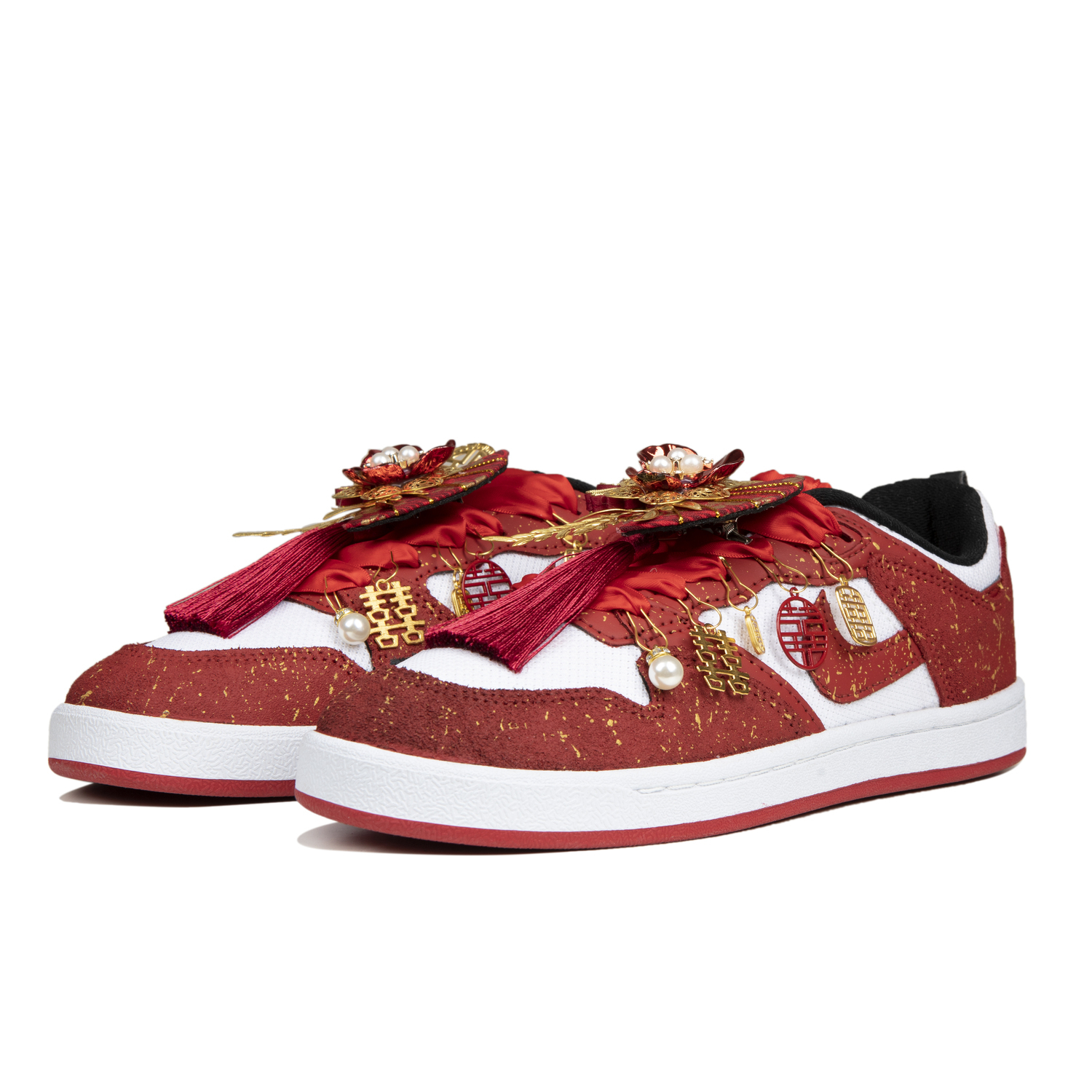 Эти кастомные кроссовки созданы на основе оригинальной модели Nike SB Alleyoop (артикул CJ0882-102) с дополнительным артикулом CJ0883-102. Вдохновленные свадебной тематикой, кроссовки получили название «We're Getting Married» (Мы поженимся). Они отличаются красной основой с золотыми акцентами и графическими деталями, что создает простой, но изысканный дизайн.