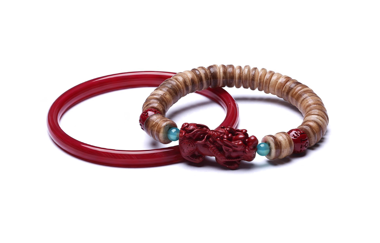 Цвет: Браслет из бусин с изображением китайского животного-символа удачи (киноварь)