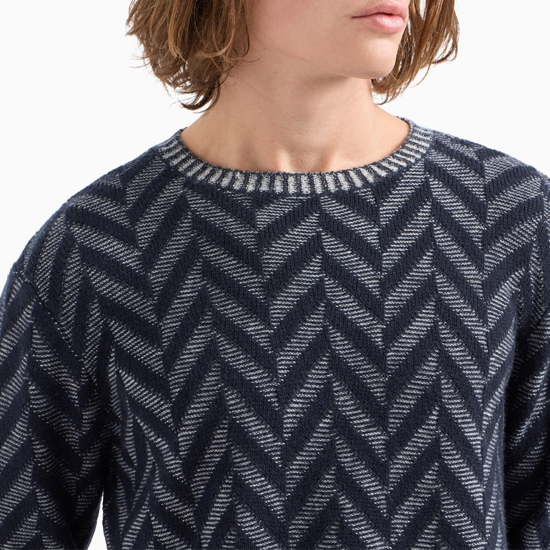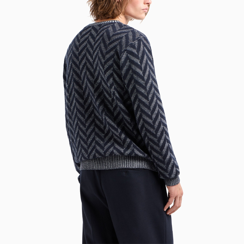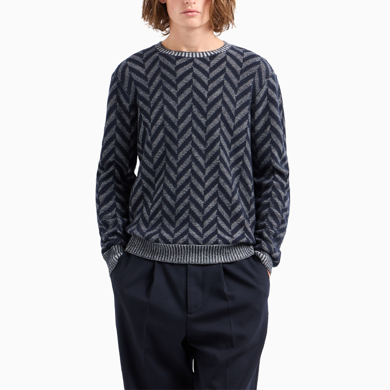 Свитер с узором «елочка» EMPORIO ARMANI, синий