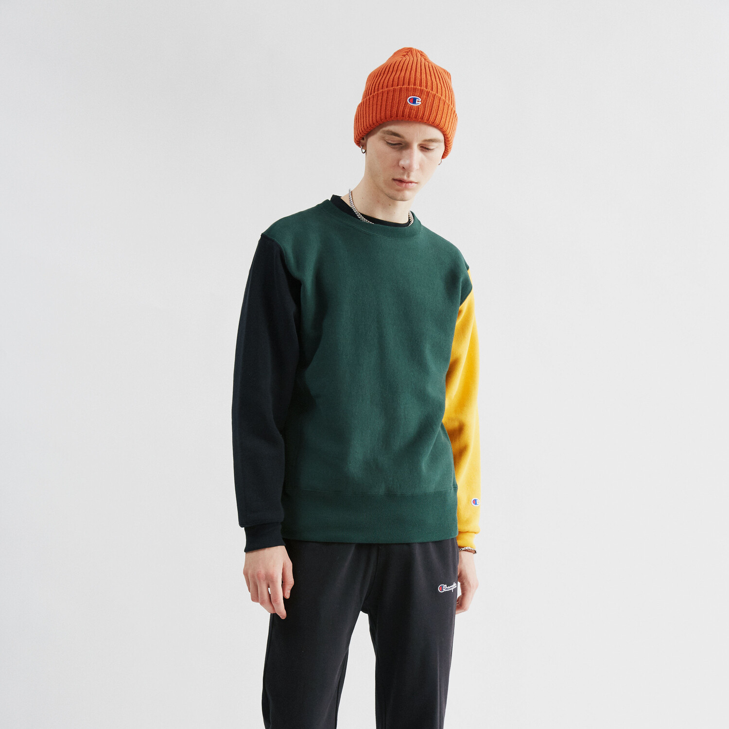 Champion Свитшот мужской темно-зеленый пэчворк