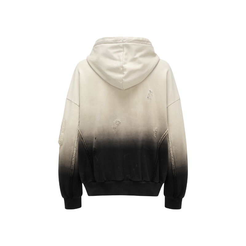 Эта деконструированная градиентная толстовка с укороченным силуэтом на молнии и спущенными плечами. Черно-серый градиент тай-дай и потертые детали, а также застежка на молнию и карманы на манжетах создают практичный повседневный образ. Эта классическая, но стильная толстовка из мягкого и приятного на ощупь махрового трикотажа из чистого хлопка универсальна и практична - незаменимая вещь в вашем гардеробе.