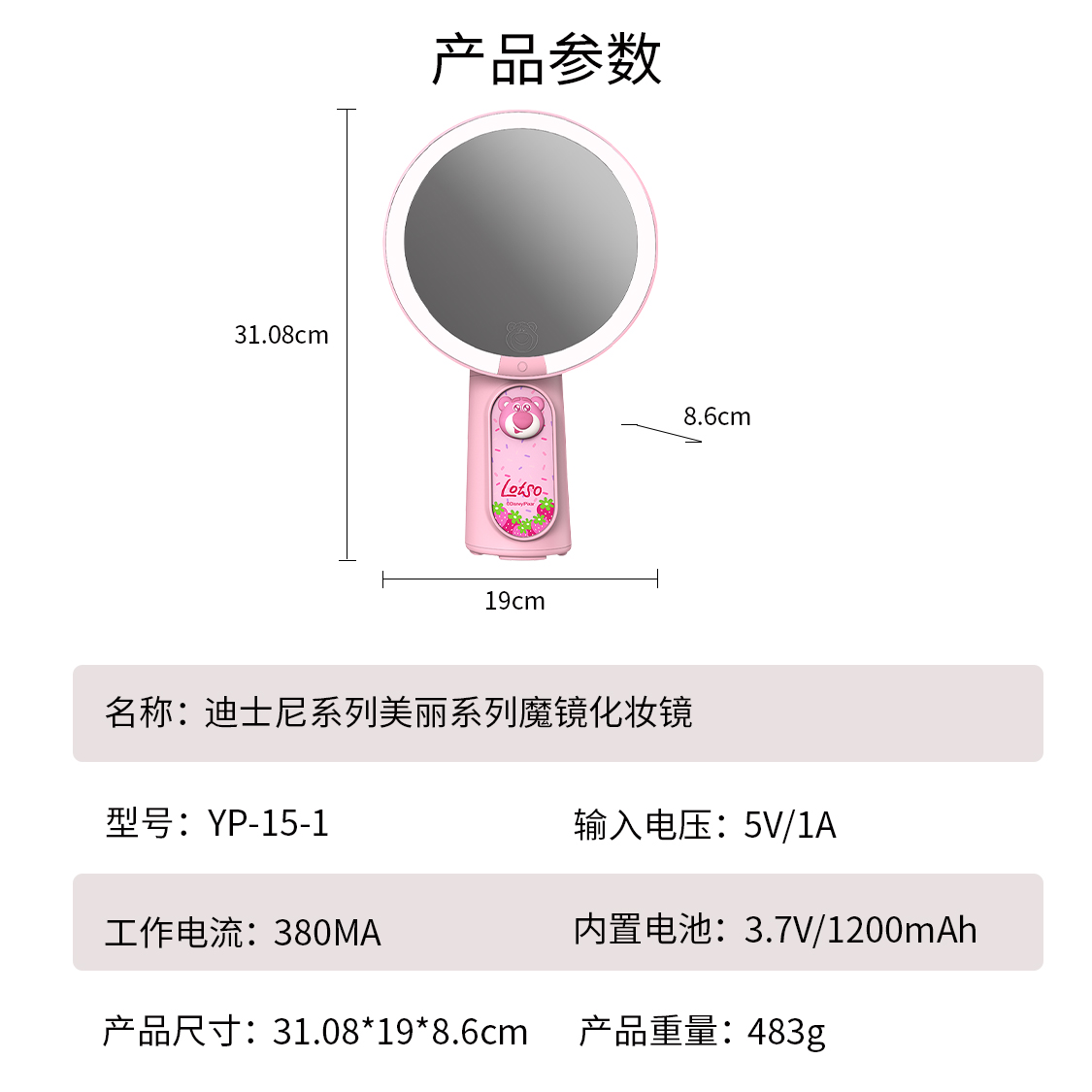 Комплект: розовый + милая повязка на голову + мини-зеркало (набор сумок для покупок «Вишневый цвет»)