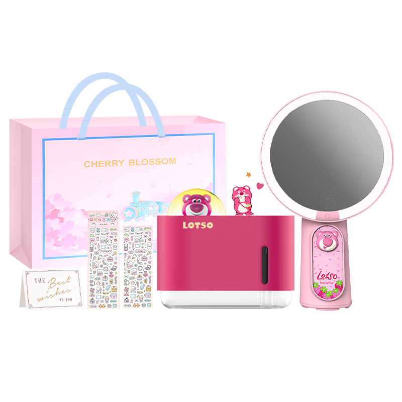 Набор: розовое косметическое зеркало + увлажнитель воздуха (романтическая комбинация с сумкой для покупок «Цветущая вишня»)