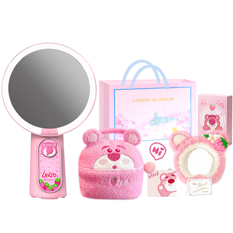 Набор: розовый + косметичка + милая повязка на голову + мини-зеркало (набор сумок для покупок Cherry Blossom)