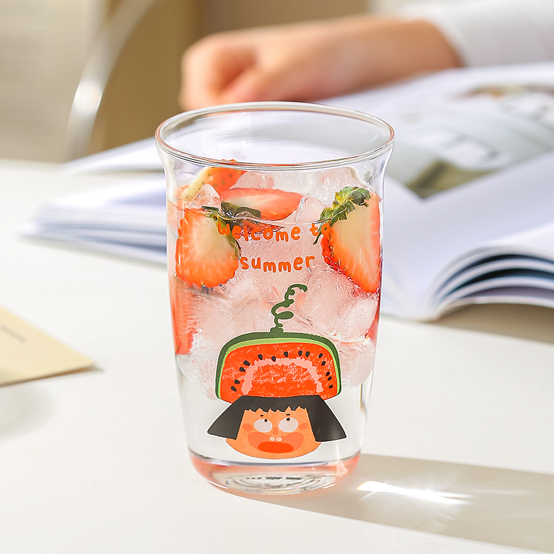 Набор: [Стиль A] Женский стеклянный стаканчик «Арбуз» 500 мл с ложкой для смешивания