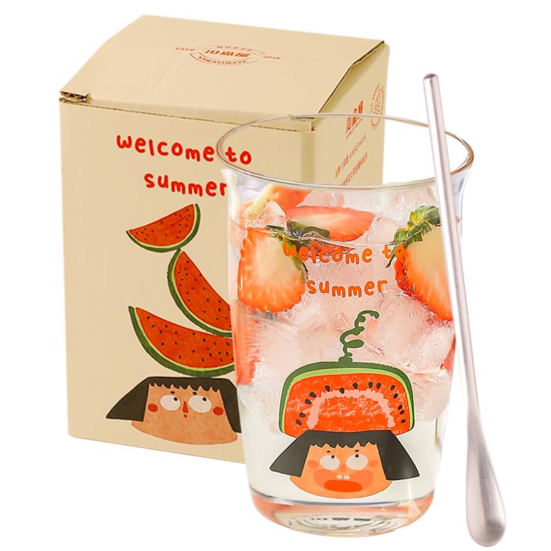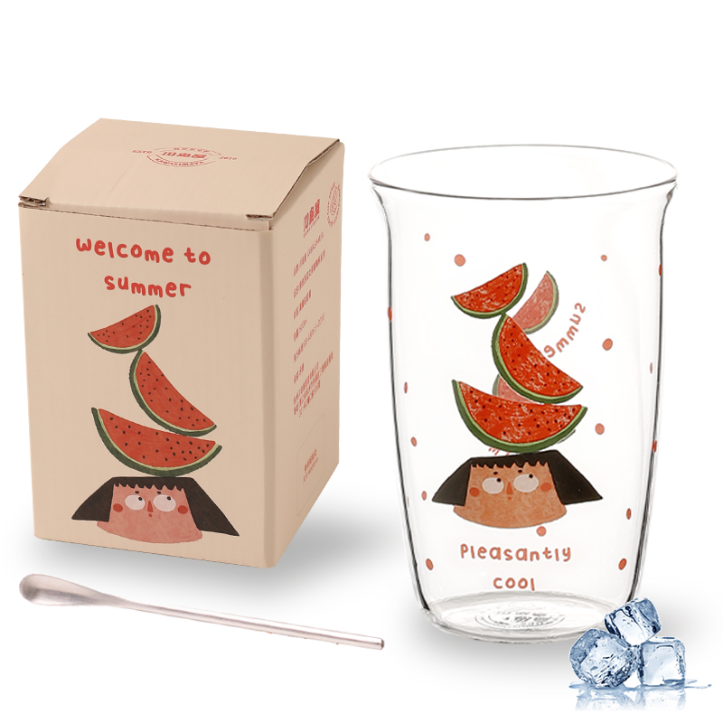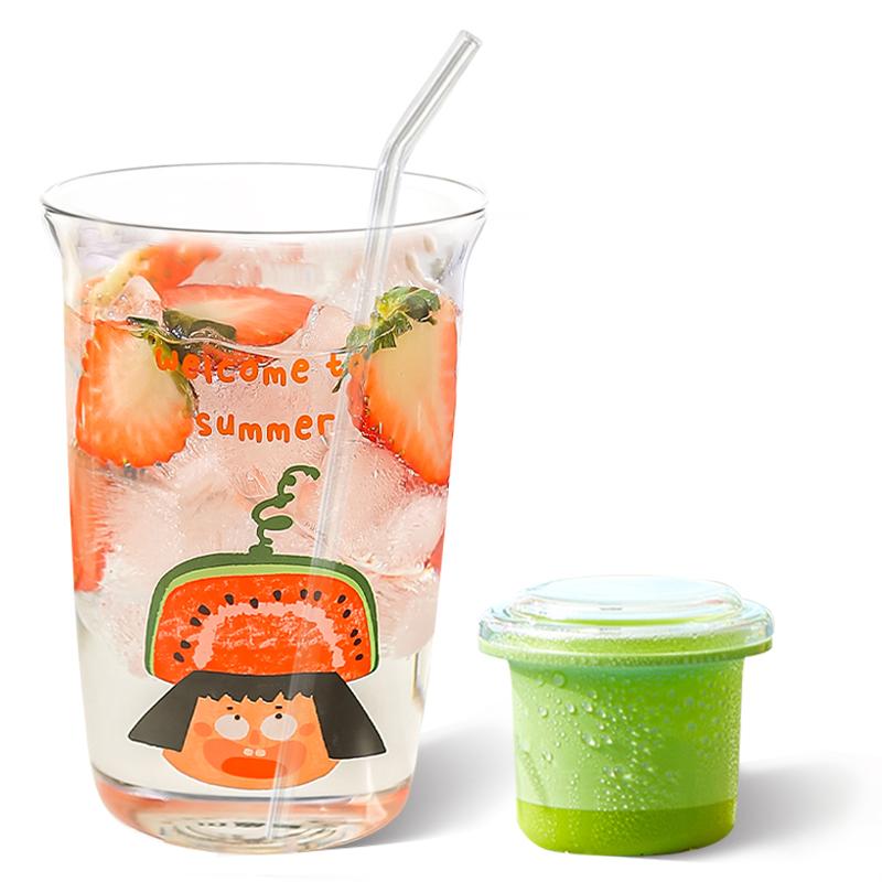 Набор: [Стиль B] Женский стеклянный стакан с арбузом + трубочка + форма для льда