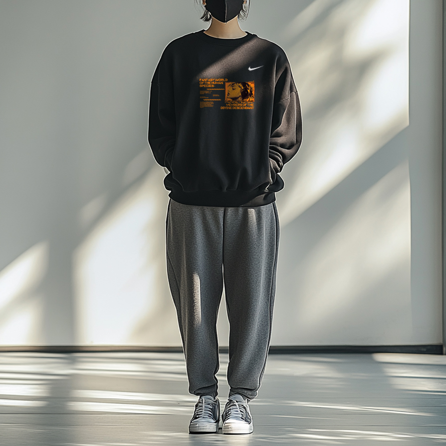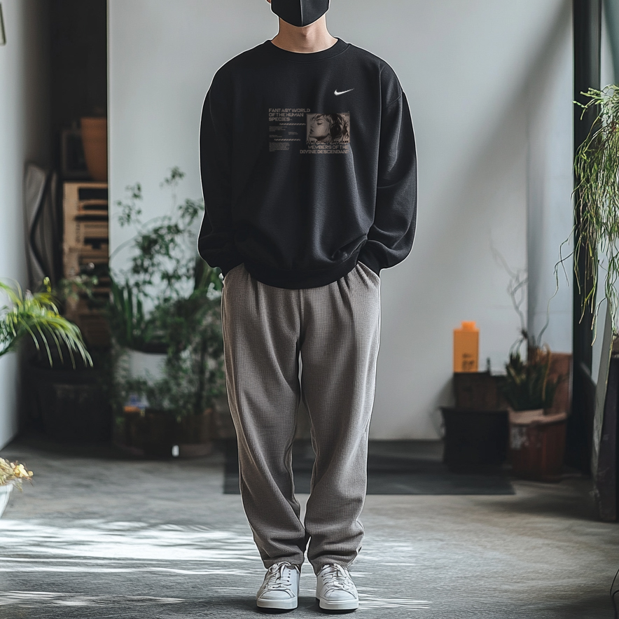 Этот уникальный дизайн включает в себя оригинальную толстовку с круглым вырезом и длинным рукавом с принтом логотипа Nike черного цвета. Оригинальный дизайн, доступный эксклюзивно на Dewu. Высококачественный, изысканный принт значительно снижает вероятность того, что вы наденете такой же наряд, как у кого-то другого.