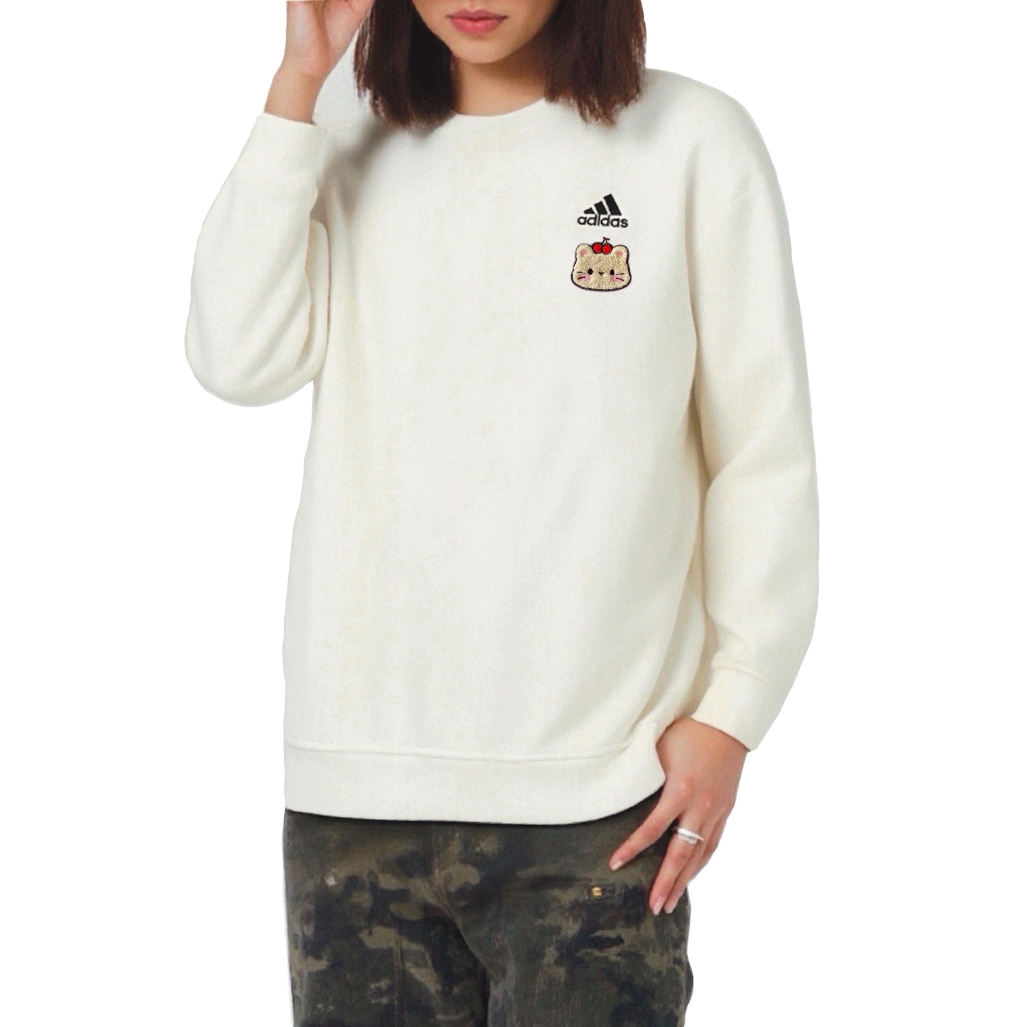 Этот сшитый на заказ предмет одежды - толстовка adidas с круглым вырезом. В связи с особенностями изготовления и материалов, этот сшитый на заказ предмет следует беречь от острых предметов, длительного намокания и сушки при высоких температурах.