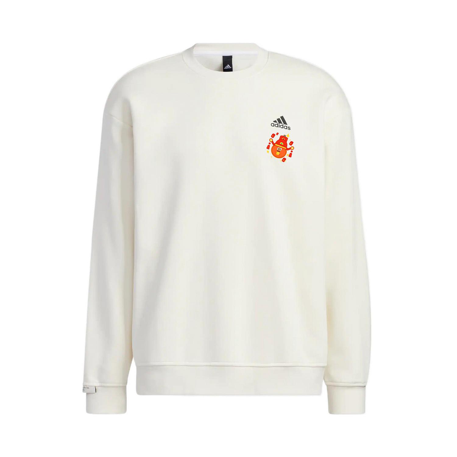 Этот индивидуальный предмет одежды создан на основе оригинальной белой толстовки с круглым вырезом и длинными рукавами на флисовой подкладке с логотипом Adidas. Это парный стиль в новогоднем стиле с изображением бога богатства в форме морковки, приносящей удачу.