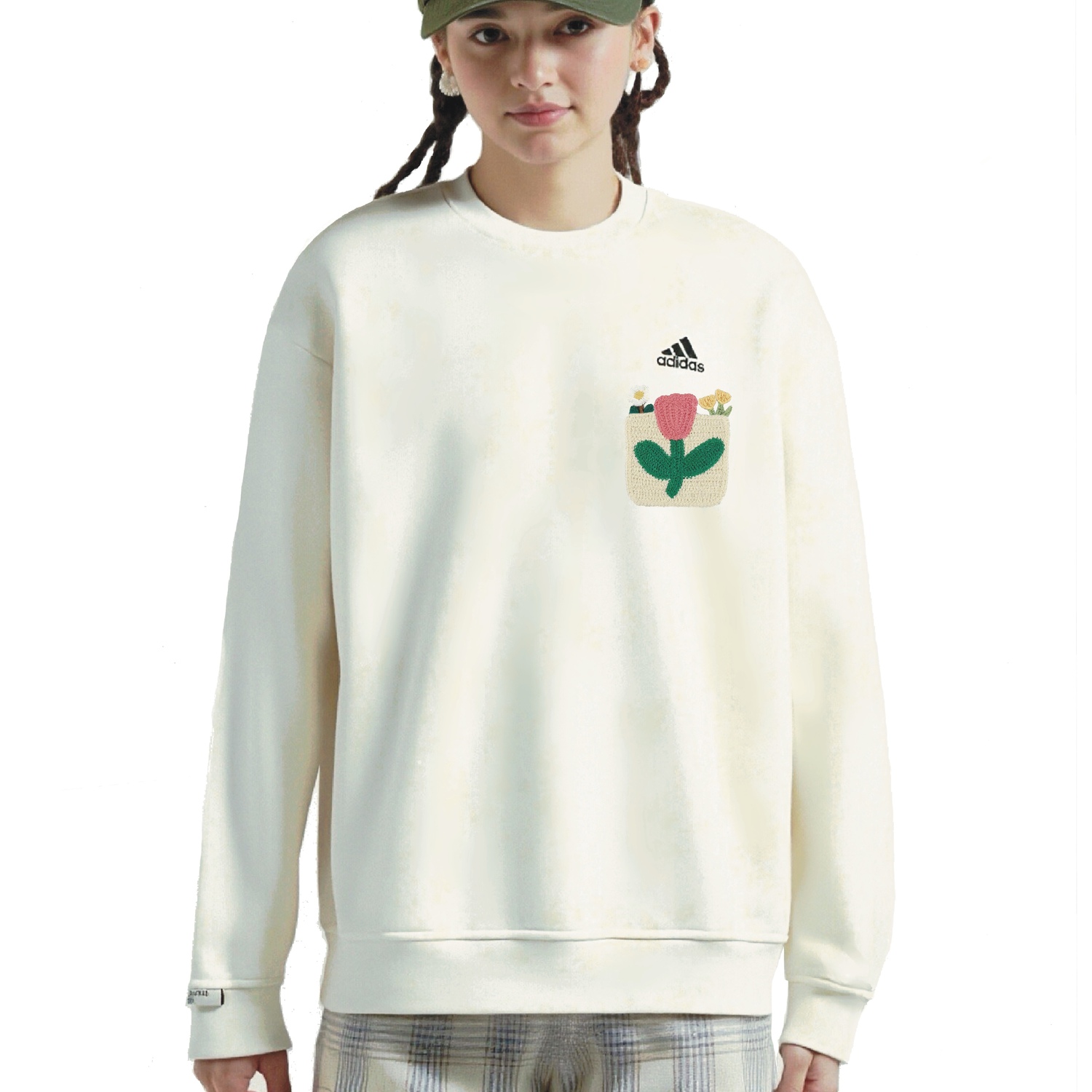 Этот сшитый на заказ предмет одежды - толстовка adidas с круглым вырезом. В связи с особенностями изготовления и материалов, этот сшитый на заказ предмет следует беречь от острых предметов, длительного намокания и сушки при высоких температурах.