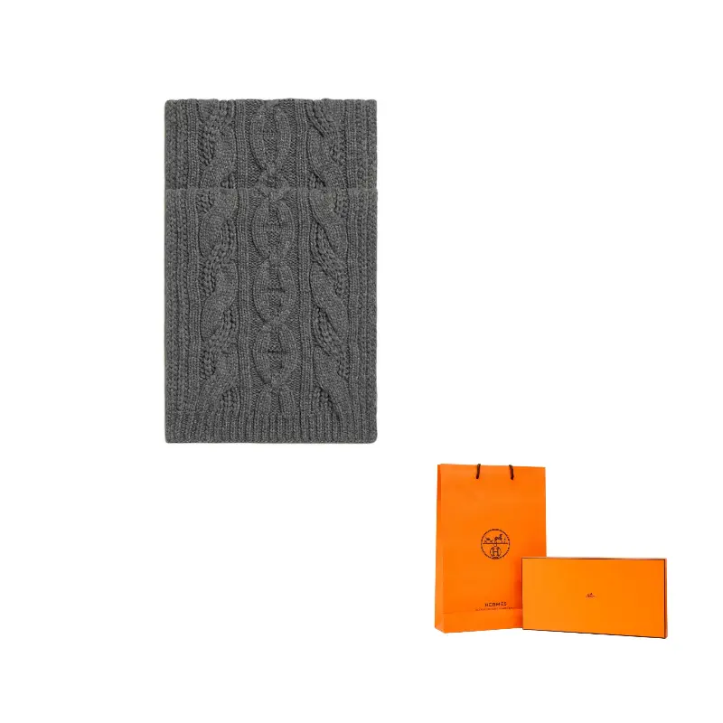 HERMES Кашемировый вязаный шарф мужской серый