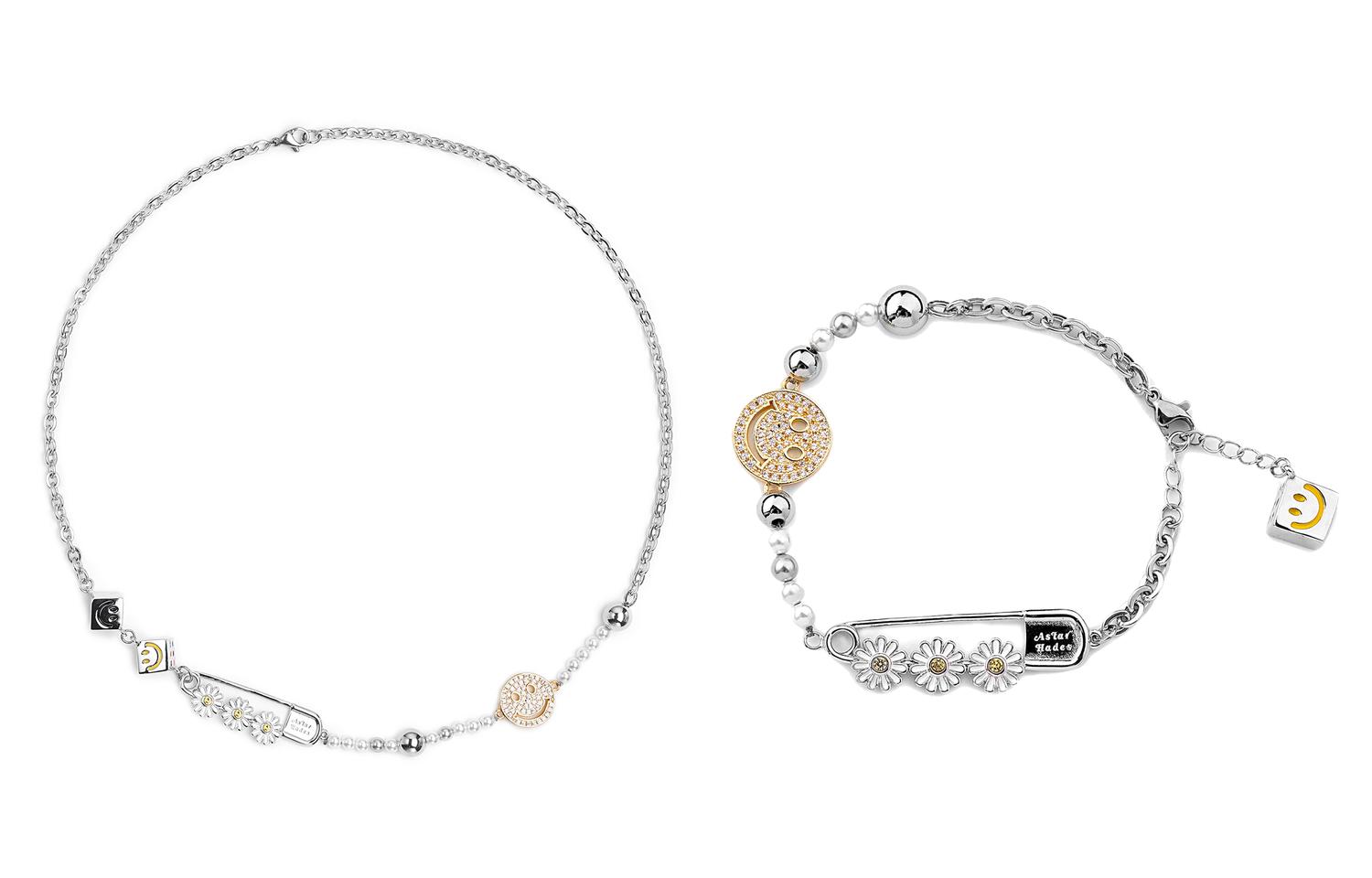Комплект: колье-булавка в виде улыбающейся ромашки, инкрустированное бриллиантами