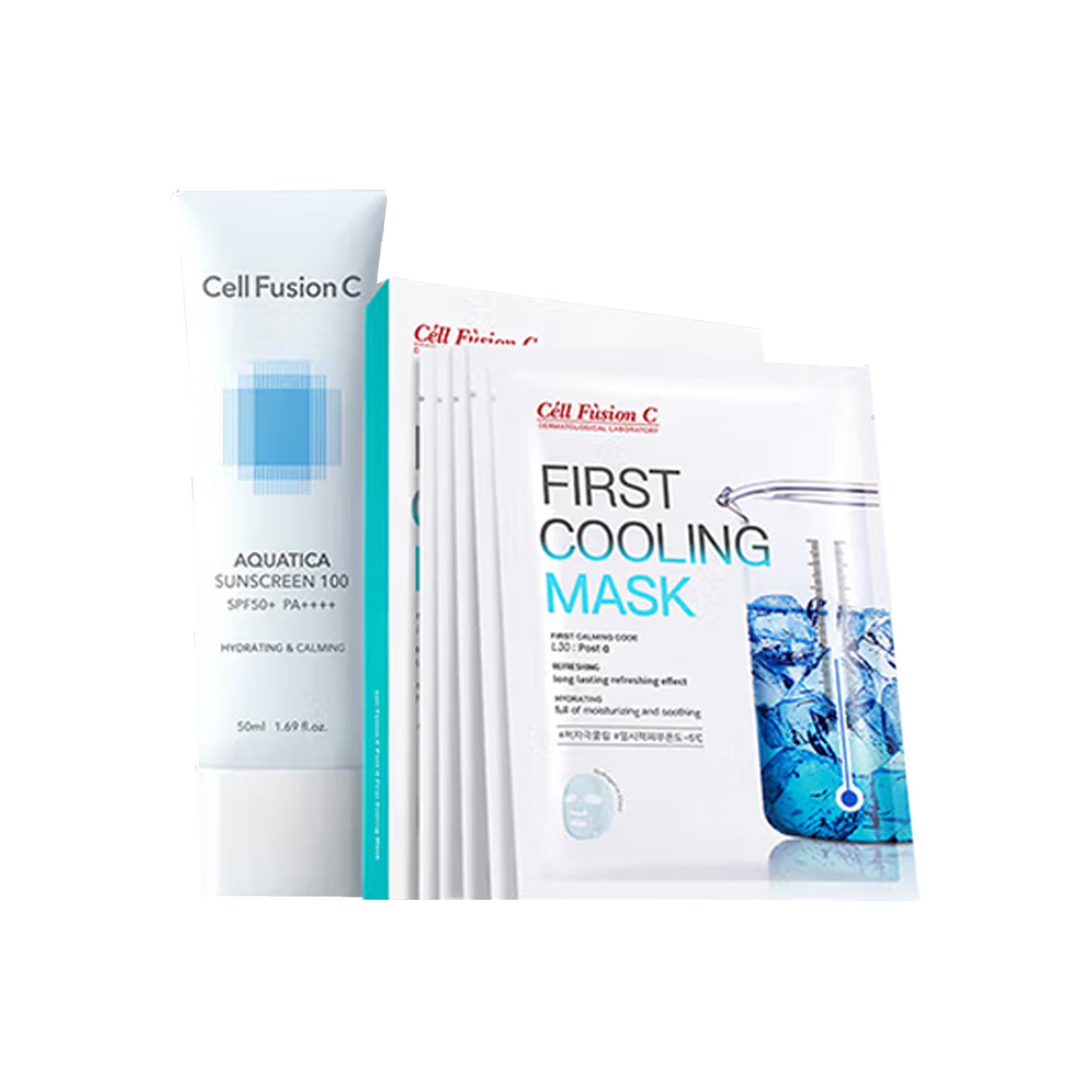 Набор из трех предметов: солнцезащитное средство Blue Sun Protection 50 мл + охлаждающая маска для лица Cooling Sensation 5 шт. + увлажняющий крем Blue Moisturizer 50 мл