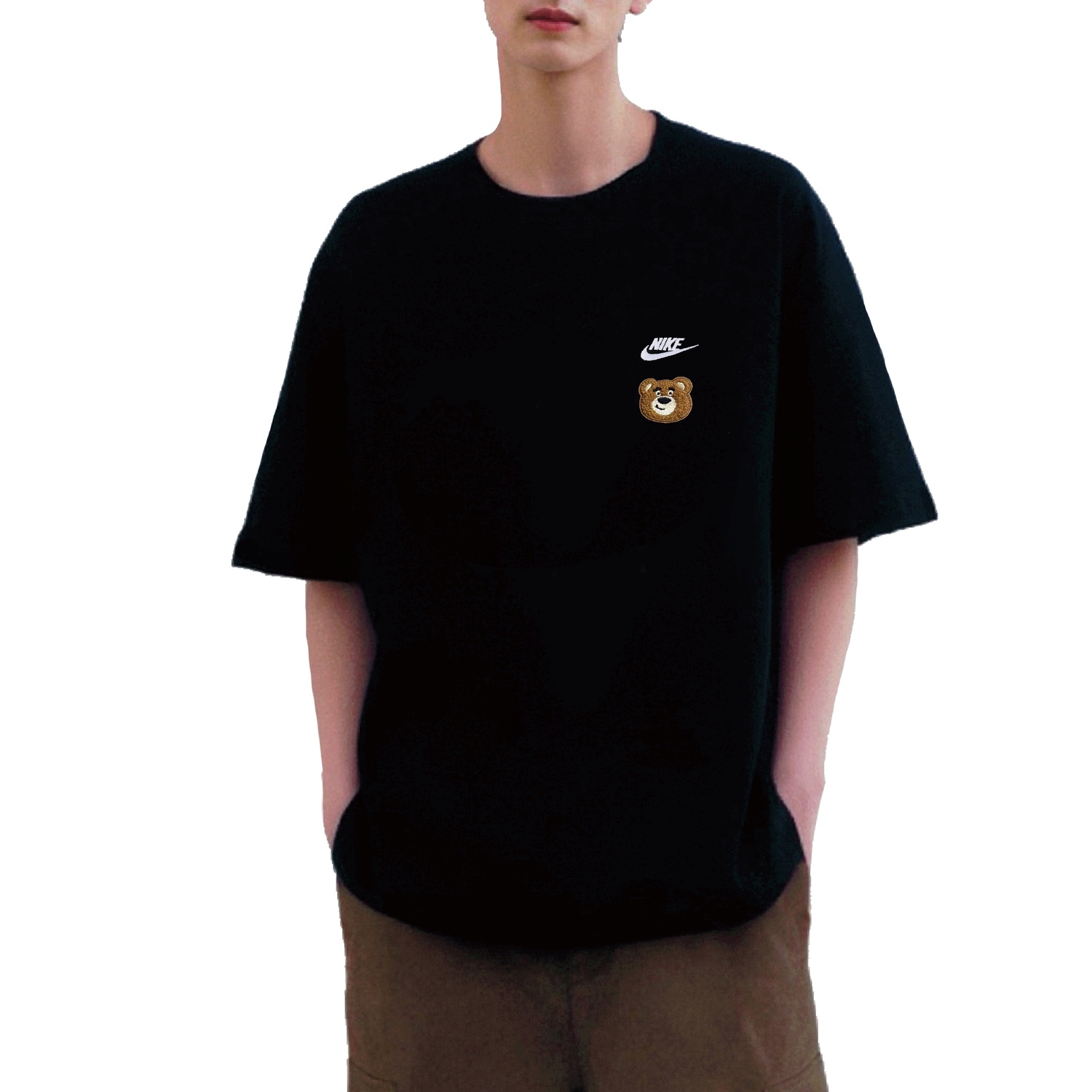 Этот сшитый на заказ предмет одежды выполнен из футболки Nike с круглым вырезом и короткими рукавами. Ввиду особенностей изготовления и материалов, этот сшитый на заказ предмет следует беречь от трения об острые предметы, длительного намокания и сушки при высоких температурах.