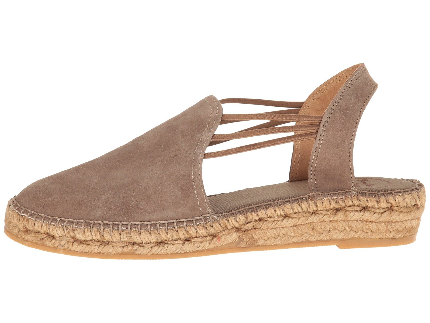 Создайте непринужденную прохладу в очаровательных сандалиях Nuria от Toni Pons. Верх из замши из нубука. Легко надевается с помощью эластичных ремешков для комфортной посадки. Кожаная подкладка. Мягкая стелька. Подошва из эспадрильи. Резиновая подошва. Сделано в Испании. Размеры изделия были сняты для размера 39 (США 8-8,5), ширина M. Обратите внимание, что измерения могут различаться в зависимости от размера. Вес обуви указан из расчета на одну вещь, а не на пару. Размеры: Высота каблука: 1 1/4 дюйма. Вес: 9 унций