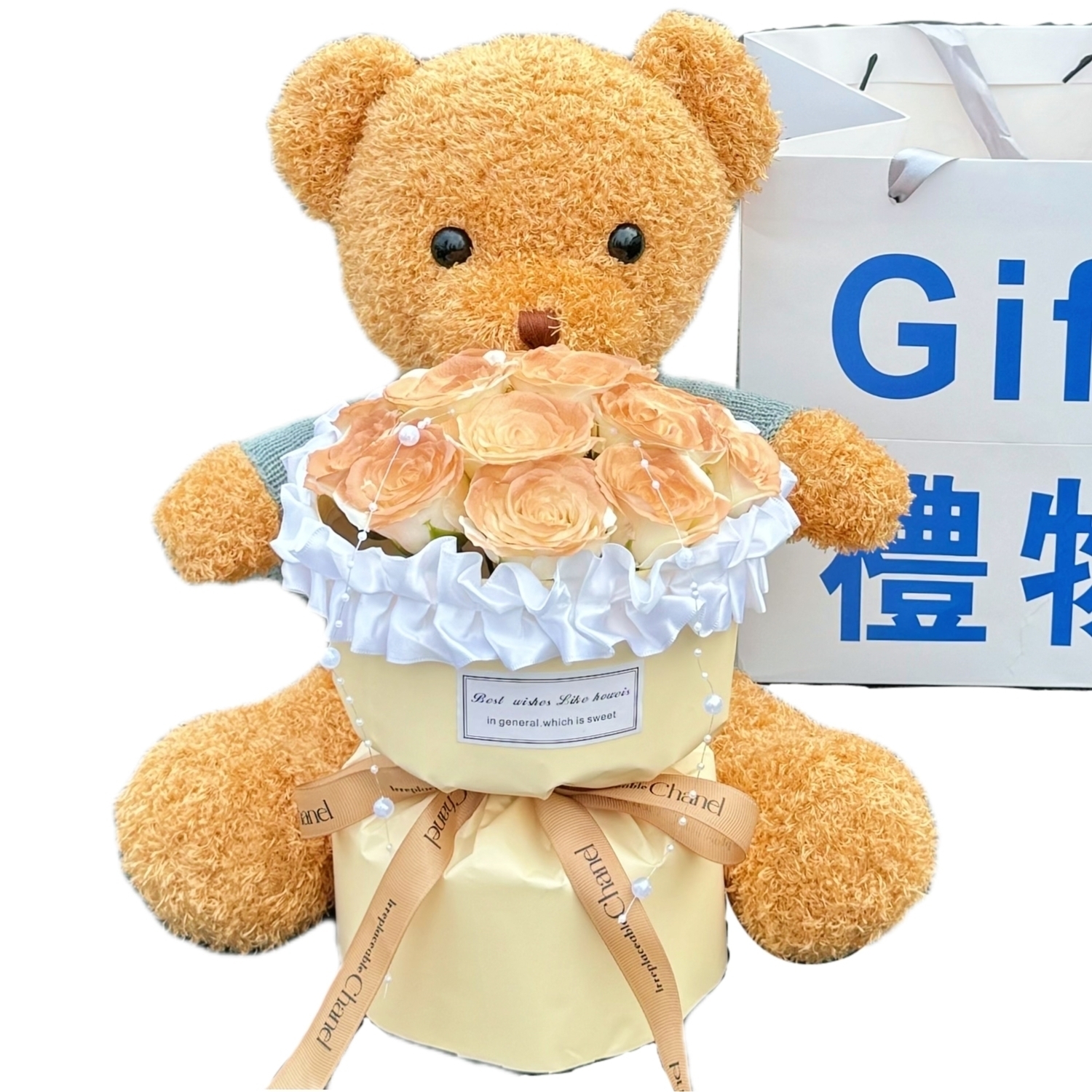 Название продукта: (Поставляется с синим подарочным пакетом) 11 балетных капучино + свитер-медведь 38 см + поздравительная открытка