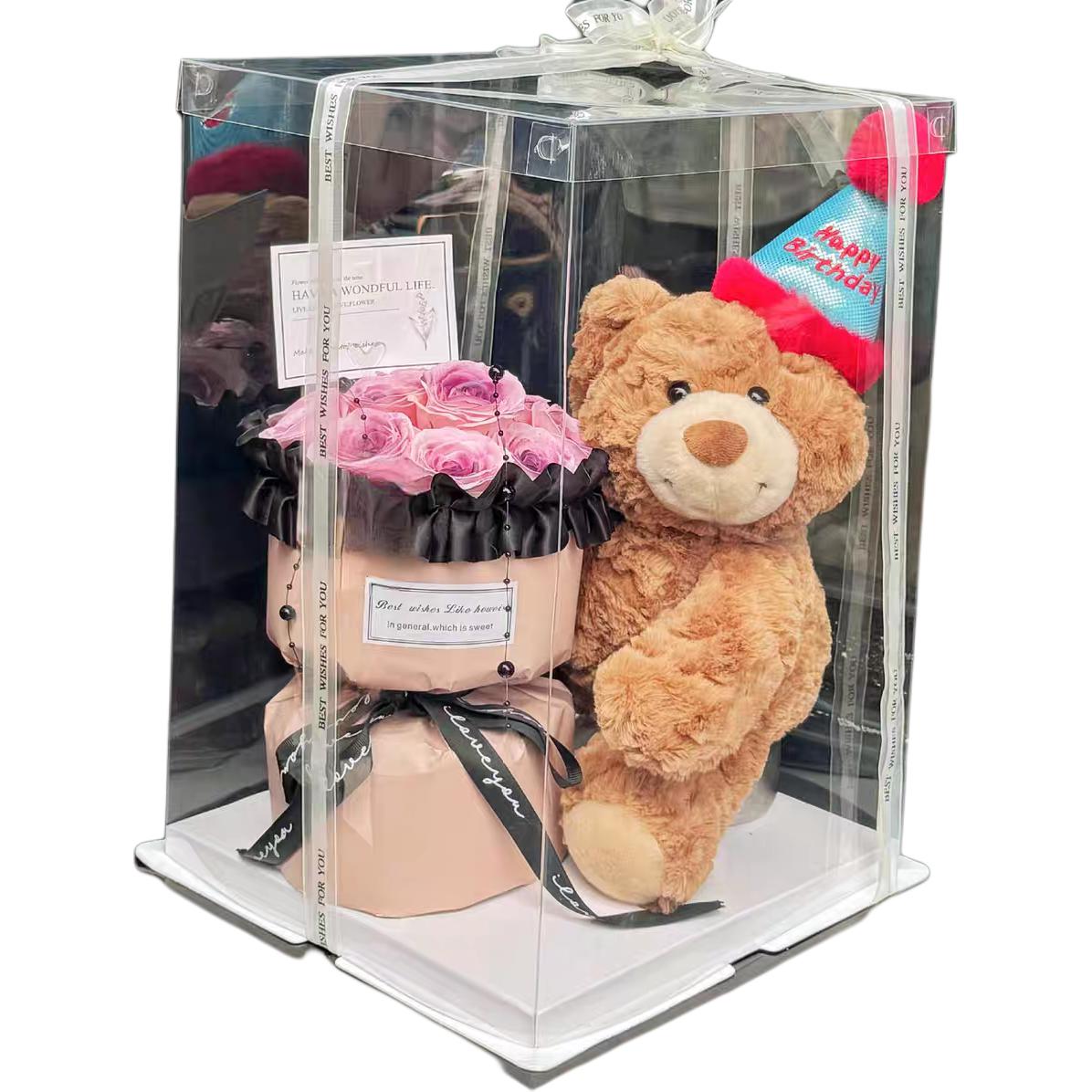 Название продукта: (Прозрачная подарочная коробка) 11 кусочков сливового джема в балетном стиле + 35-сантиметровый праздничный мишка + поздравительная открытка