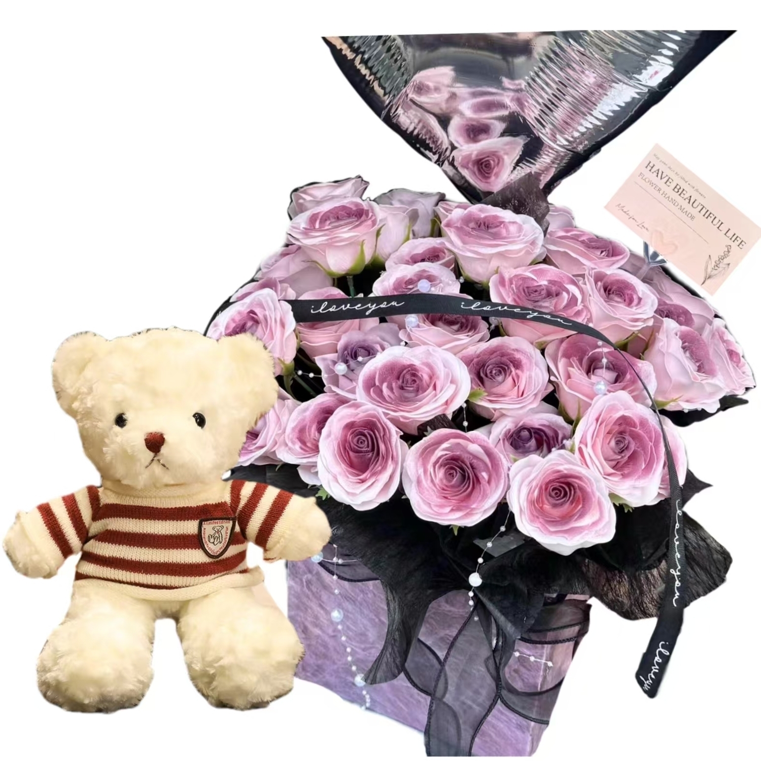Название продукта: 30-сантиметровый плюшевый мишка + 11 кусочков соуса из маринованных слив в квадратной коробке + подарочный пакет + воздушные шары + поздравительная открытка