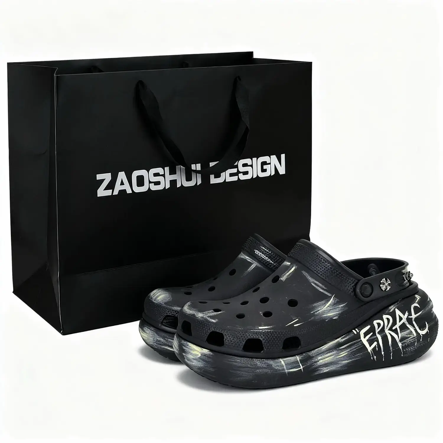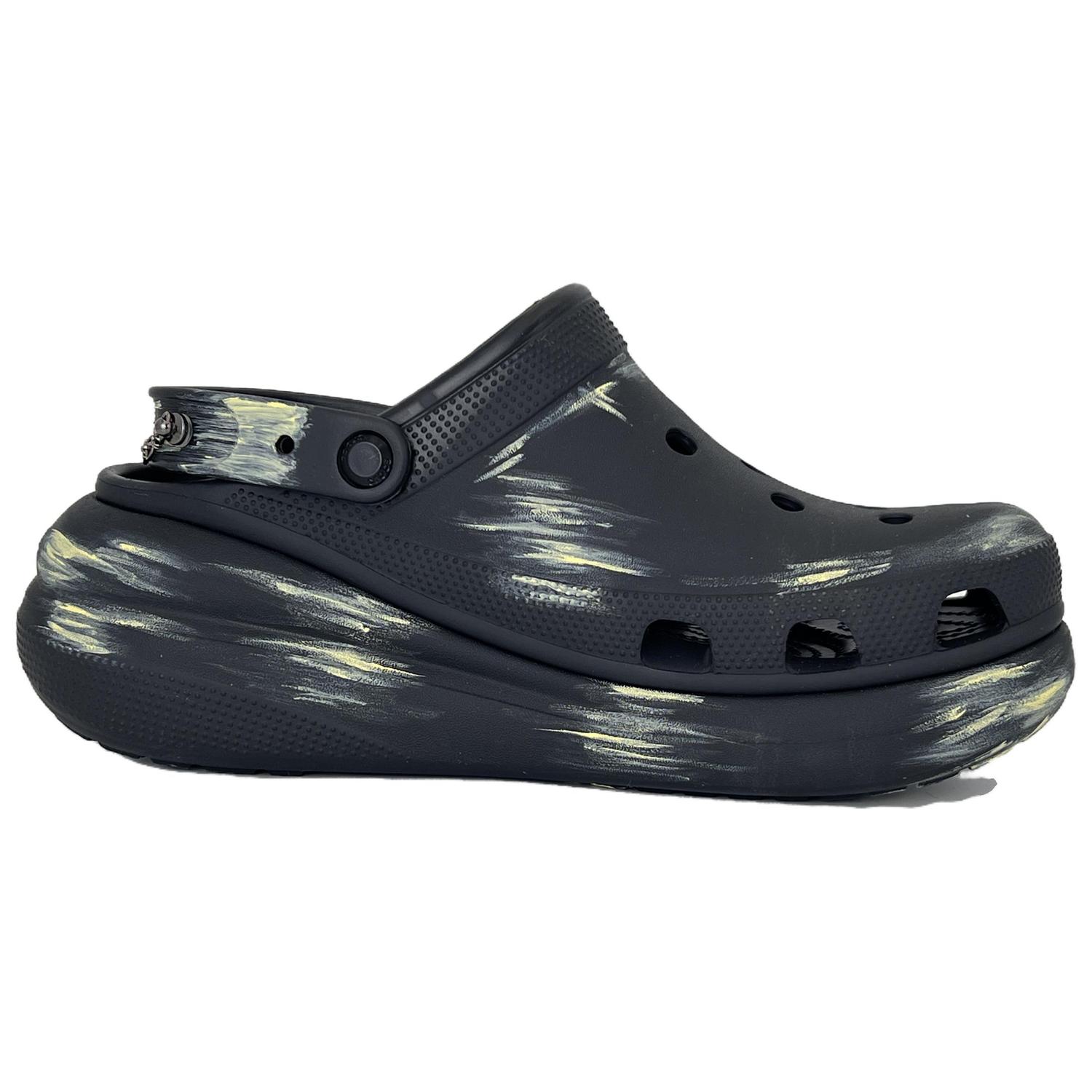 Эти туфли, изготовленные на заказ, основаны на оригинальной модели Crocs унисекс. Преимущественно черный цвет, вдохновленный готической тематикой, визуально увеличивает рост, делая их невероятно привлекательными. На изображении представлено изображение самого изделия; в готовом изделии возможны незначительные отклонения в цвете. Вся обувь, изготовленная на заказ, изготавливается вручную, и каждая пара будет иметь небольшие отличия. Кожа, строчки и печать являются стандартными фабричными работами и не требуют индивидуального изготовления.