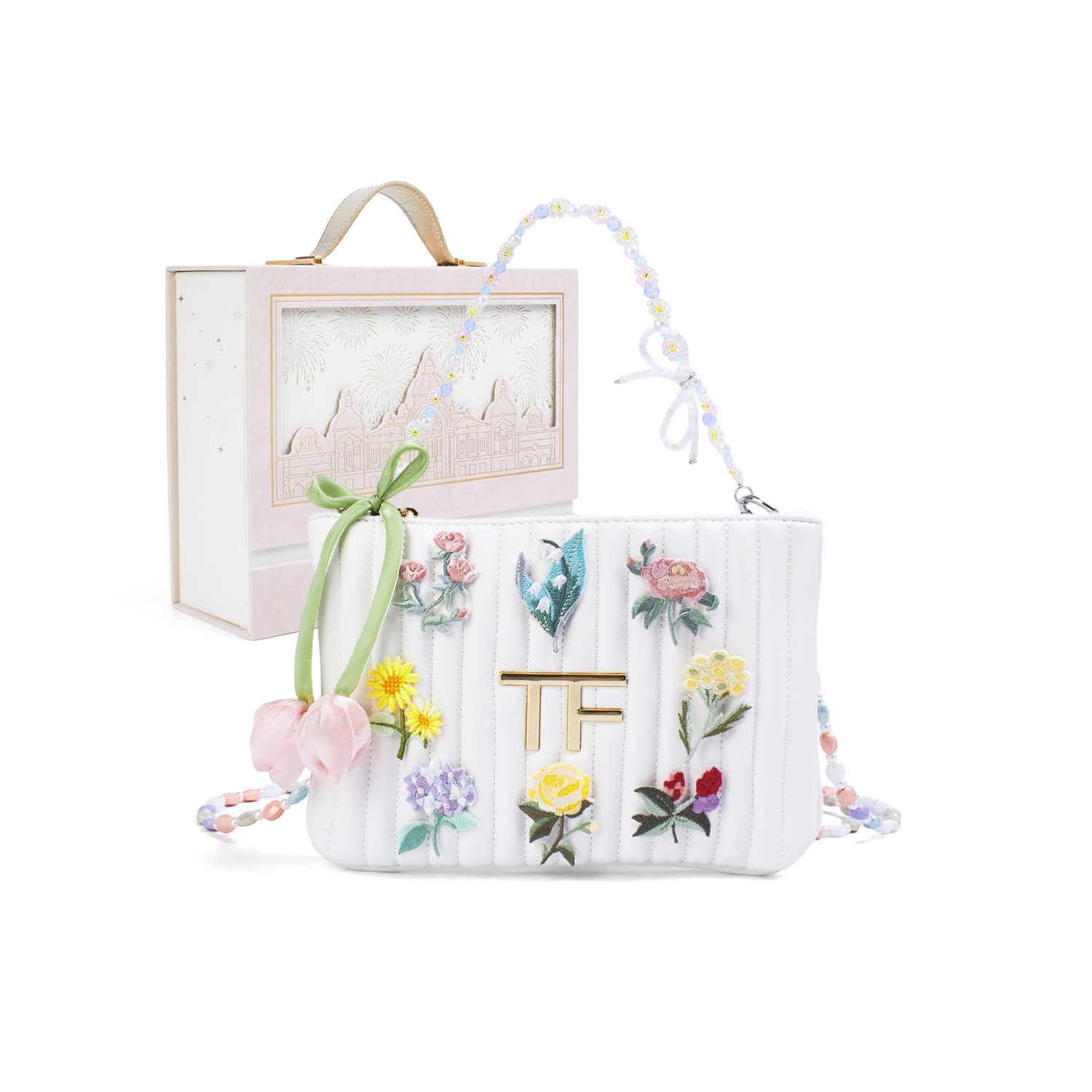 Эта сумка изготовлена на заказ, используя оригинальную белую косметичку-клатч TF с длинным ремешком на запястье. В связи с особенностями изготовления и материалов, эту косметичку следует беречь от острых предметов, длительного намокания и сушки при высоких температурах. Важные примечания: 1. Это готовый продукт, продающийся как индивидуальный товар; индивидуальная кастомизация в настоящее время не поддерживается. 2. Заказы на индивидуальные товары не могут быть отменены без уважительной причины после оплаты. 3. Этот индивидуальный товар является подлинным и проверен и аутентифицирован платформой Dewu; пожалуйста, покупайте с уверенностью.