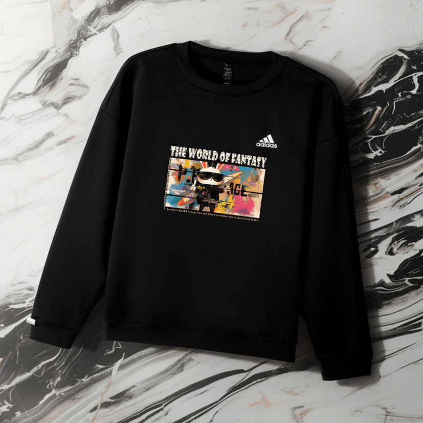 Этот индивидуальный предмет одежды создан на основе оригинальной толстовки с круглым вырезом и длинными рукавами на флисовой подкладке с логотипом Adidas. Оригинальный дизайн, доступный эксклюзивно на Dewu, значительно снижает вероятность того, что кто-то наденет такой же наряд.