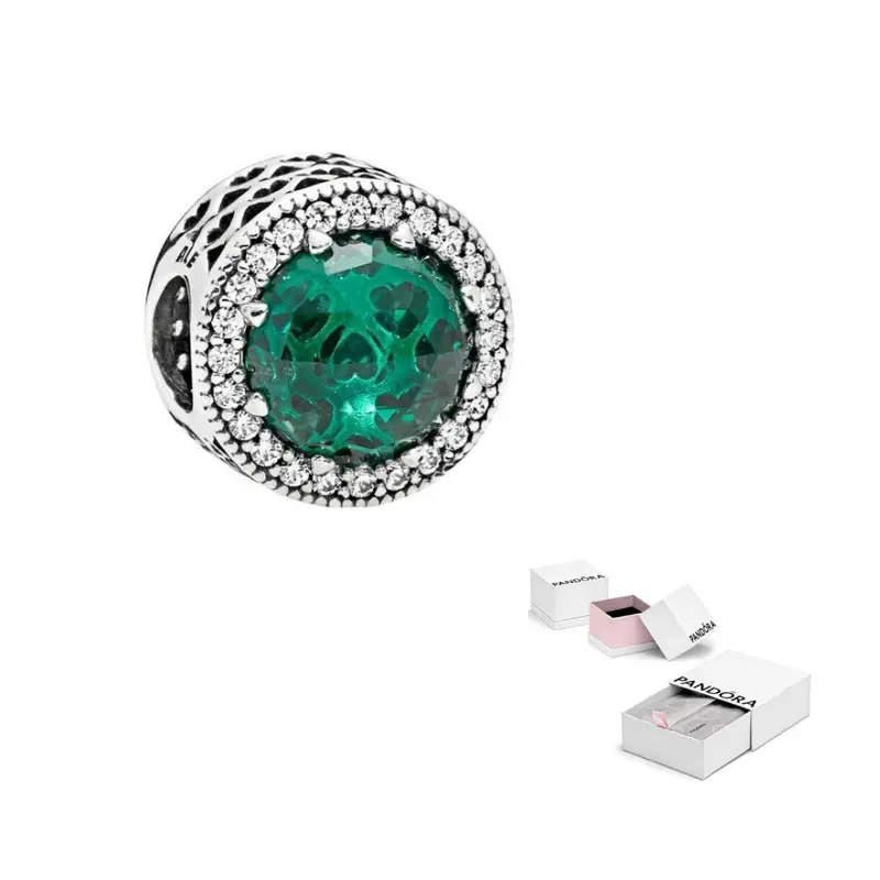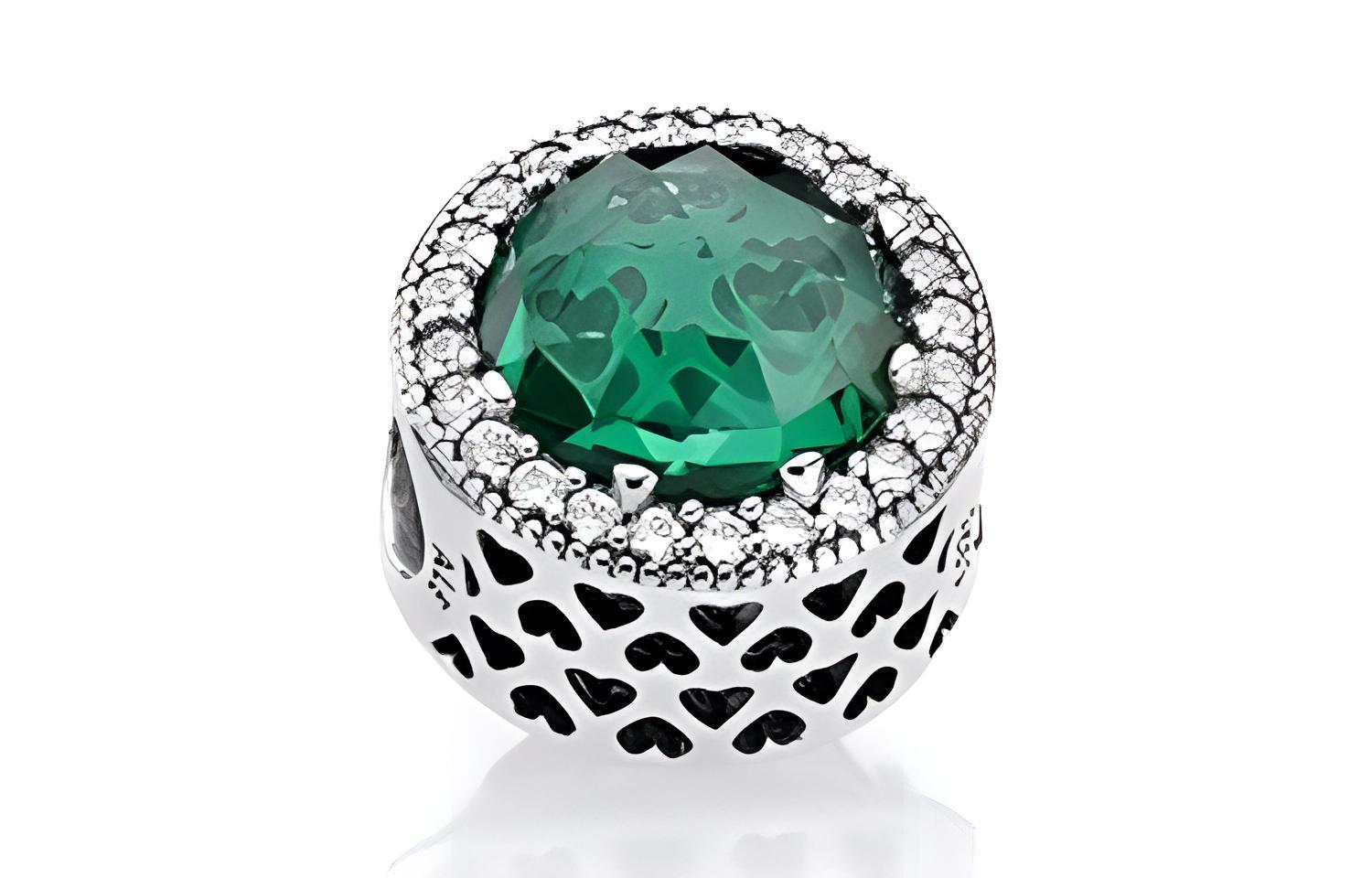 Это двустороннее украшение в форме пуговицы из стерлингового серебра 925 пробы отличается ярким зеленым оттенком и центральным камнем огранки «роза», окруженным прозрачными кубическими цирконами. Ажурная форма сердца добавляет изысканный винтажный шарм.