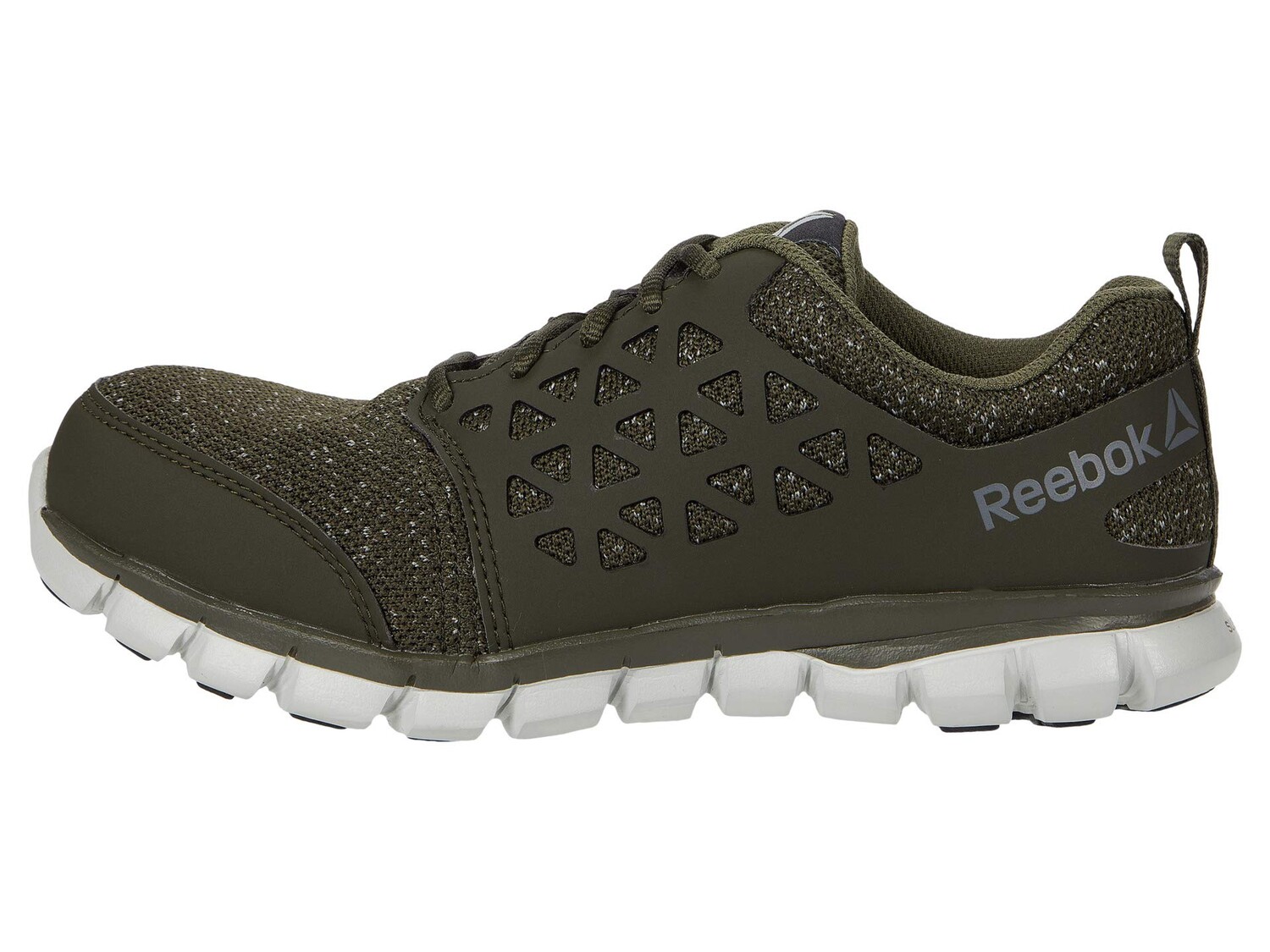 Рабочие туфли Reebok Sublite Cushion Work Comp Toe EH - RB051 имеют удобную спортивную конструкцию, надежную защиту и легкий комфорт, необходимые для максимальной производительности каждый рабочий день. Номер модели: RB051 (оливково-зеленый). Рабочие кроссовки на шнуровке. с композитным защитным подноском, который соответствует стандартам ASTM F2413 I/C (удар и сжатие) и стандартам безопасности EH (опасность поражения электрическим током). Рабочая обувь с низким вырезом изготовлена из микрофибры и сетчатого верха и имеет 100% неметаллическую конструкцию. Подкладка из влагоотводящей нейлоновой сетки. Съемная стелька с амортизацией и технологией MemoryTech Massage обеспечивает превосходную поддержку и комфорт под ногами. Промежуточная подошва из этиленвинилацетата Sublite обеспечивает легкую амортизацию и мягкую поддержку. Нескользящая резиновая подошва соответствует стандарту MARK II 0,53 маслянистого/мокрого качества и превосходит его. Подушечки в передней части стопы для превосходного сцепления. Подошва имеет гибкие канавки по всей длине стопы для улучшения подвижности и гибкости при каждом шаге. Импортировано. Измерения продукта были сняты для размера 9, ширина B — средний. Обратите внимание, что размеры могут различаться в зависимости от размера. Размеры: Вес: 13 унций.