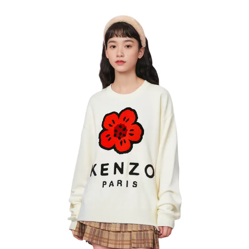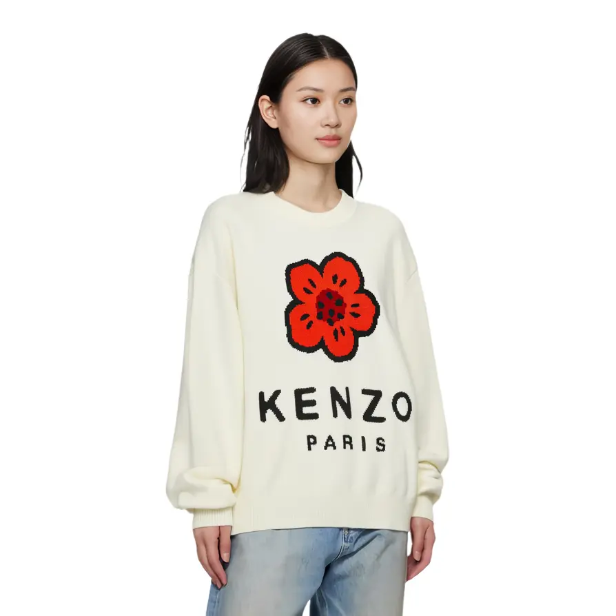 Боке цветок вязаный джемпер KENZO, серо-белый 31 133₽