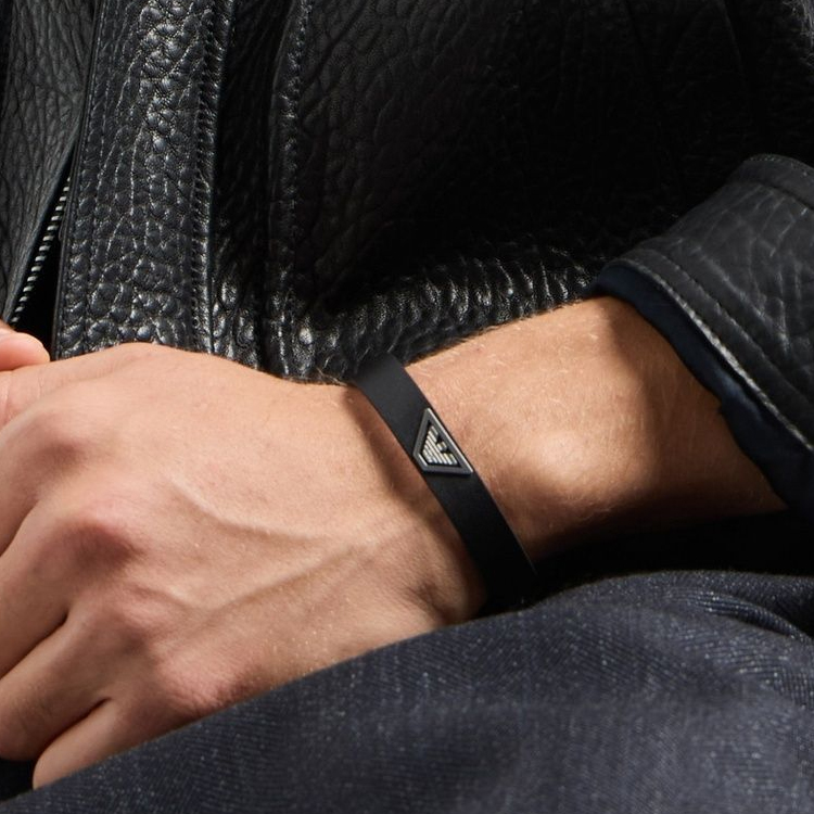EMPORIO ARMANI Черный кожаный ремешок браслет