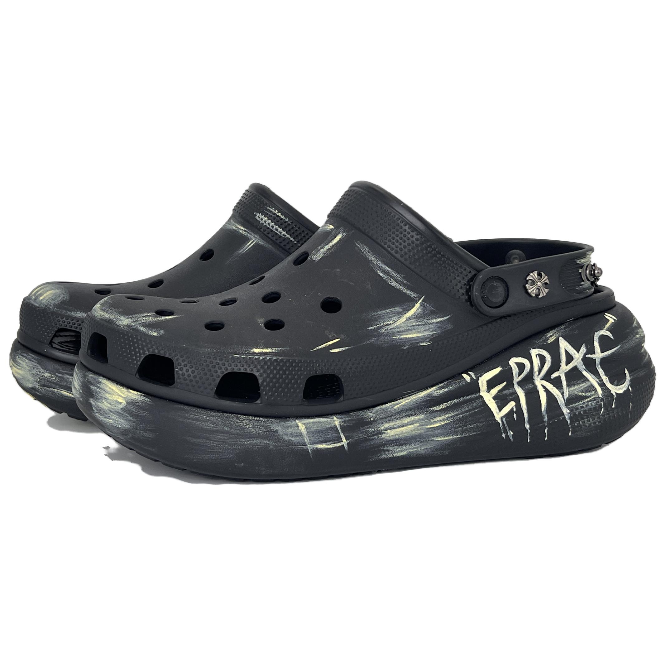 Эти туфли, изготовленные на заказ, основаны на оригинальной модели Crocs унисекс. Преимущественно черный цвет, вдохновленный готической тематикой, визуально увеличивает рост, делая их невероятно привлекательными. На изображении представлено изображение самого изделия; в готовом изделии возможны незначительные отклонения в цвете. Вся обувь, изготовленная на заказ, изготавливается вручную, и каждая пара будет иметь небольшие отличия. Кожа, строчки и печать являются стандартными фабричными работами и не требуют индивидуального изготовления.
