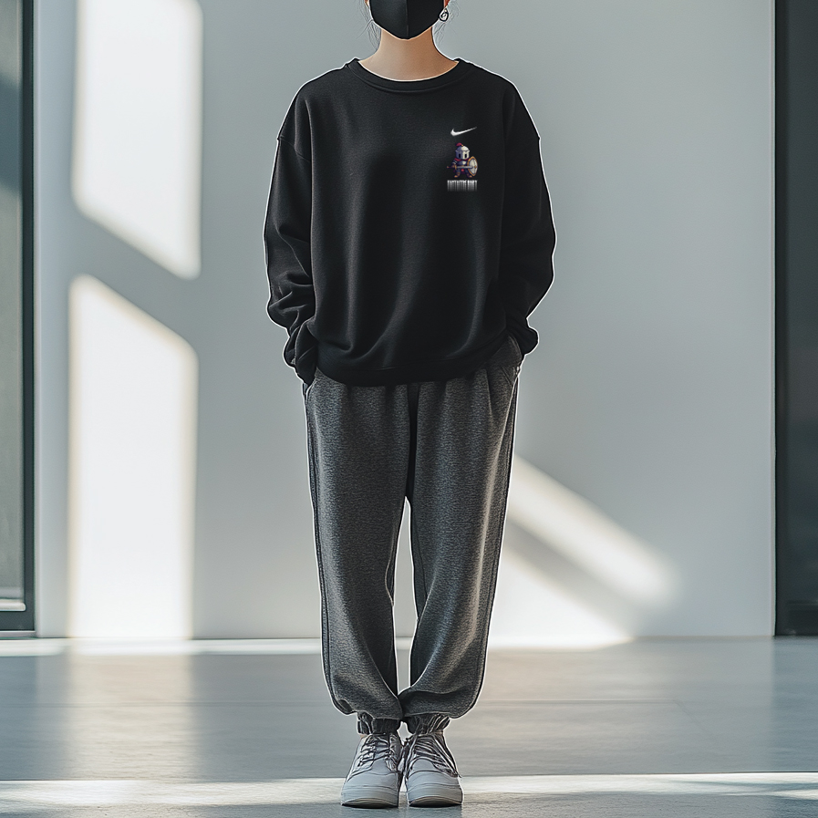 Этот уникальный дизайн включает в себя оригинальную толстовку с круглым вырезом и длинным рукавом с принтом логотипа Nike черного цвета. Оригинальный дизайн, доступный эксклюзивно на Dewu. Высококачественный, изысканный принт значительно снижает вероятность того, что вы наденете такой же наряд, как у кого-то другого.